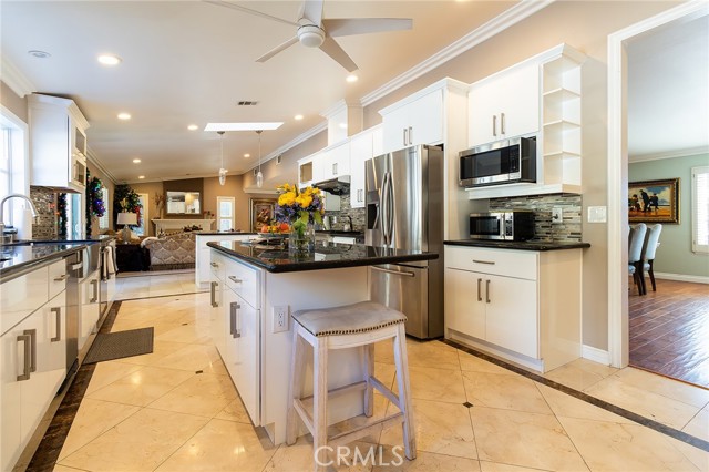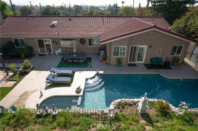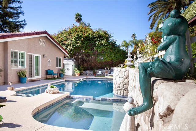 Located in Bradbury's foothills on a half-acre lot, this property includes two fully renovated homes. The lower-level home, approximately 2,800 sq. ft., features vaulted ceilings, marble and upgraded wood flooring, and elegant crown molding. The kitchen showcases imported Italian white cabinetry with glass doors, a spacious island ideal for any chef, and beautiful views of the pool and spa surrounded by a natural rock wall. The main home features a spacious floor plan with a living room, formal dining area, and a family room with a fireplace. It offers four bedrooms, including a large master suite with a walk-in closet, a whirlpool tub, and sliding glass doors that open to the pool area. The second home, located on an elevated level with stunning views, includes 2 bedrooms, 2 bathrooms, and approximately 1,428 sq. ft. A large deck and covered patio provide beautiful valley views and outdoor relaxation. The property offers ample parking for boats, RVs, and other recreational vehicles — ideal for multi-generational living or potential rental income. A custom play house adds a special touch to this unique estate. Unique property — a must-see!
