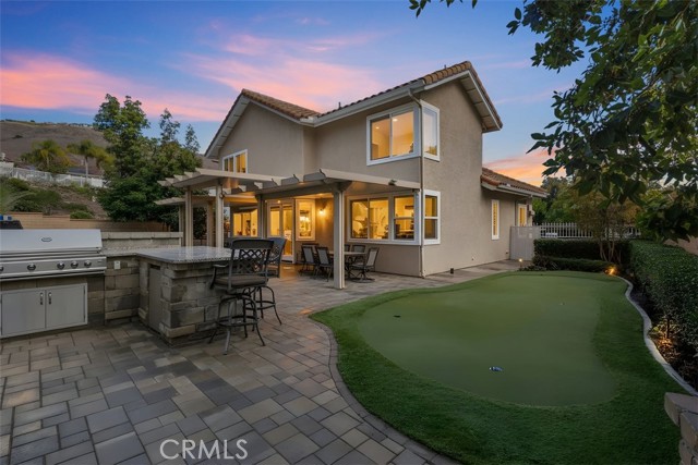Elegant Family Home with Resort-Style Backyard on a Spacious Lot Nestled on a generous ~9,100 sq. ft. lot in a serene, established neighborhood, this elegant residence offers 2800+ sq. ft. of living space across two stories. With 4 bedrooms and 3 bathrooms, it combines space, comfort, and style — perfect for relaxed family living and elegant entertaining. At the heart of the home, a chef-caliber kitchen featuring a WOLF cooktop and double oven, opens seamlessly to the family room and main living areas, creating an ideal flow for gatherings and indoor-outdoor living. The primary suite provides a luxurious retreat with double-door entry, dual walk-in closets, a sitting area, and a spa-inspired en-suite bathroom. The additional bedrooms are generously sized, including one conveniently located on the main level next to a ¾ bath — a perfect setup for guests or multi-generational living. Step outside to your private backyard oasis: a sparkling saltwater pool and spa with rock waterfall and slide, a golf putting green, and a built in BBQ with refrigerator and Bar offering true resort-style living. Additional highlights include a 3-car garage, RV parking, and a quiet cul-de-sac location within a community celebrated for its family-friendly atmosphere and top-rated schools. *Some of the photos have been virtually staged or professionally altered.