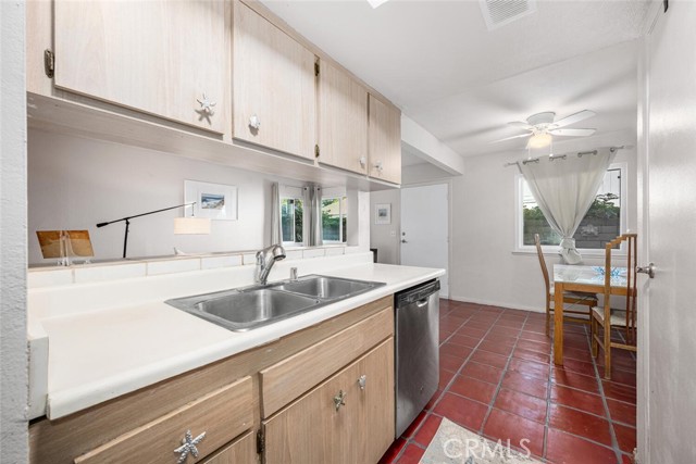 Welcome to this charming end-unit condo located in the desirable Huntington Harbor Heights Villas community. This two-bedroom, one-bathroom home features a convenient ground-floor entrance and a private patio, perfect for enjoying the coastal breeze. Inside, the open-concept layout creates a spacious and inviting atmosphere, seamlessly connecting the living room, dining area, and kitchen. Upstairs, you will find both bedrooms, including one with a walk-in closet. This unit offers easy access to a shared garage and benefits from the privacy and tranquility of an end location. If you have a boat or an RV, there is a dedicated parking area for a monthly fee. Residents of Huntington Harbor Heights Villas enjoy a range of community amenities, including a pool, sports court, clubhouse, and beautifully maintained park-like grounds shaded by mature trees. Situated near the harbor, beaches, shopping, and dining, this home captures the essence of coastal living in a serene and well-kept neighborhood.