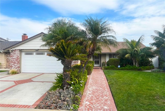 Absolutely Stunning Single-Level Home — Expanded, Exquisite, and Impeccably Maintained. This extraordinary ranch-style Stratford home is a true masterpiece of comfort, elegance, and craftsmanship. Boasting nearly 1,700 sqft of beautifully upgraded living space plus a 450-sqft enclosed patio, it offers an entertainer's dream for dining, parties, or relaxing with family and friends. From its picture-perfect curb appeal — featuring pristine tropical landscaping, lush lawn, brick siding and walkway, and a charming front porch — to its sun-drenched open-concept interior, every inch radiates pride of ownership and timeless sophistication. Step through the inviting foyer into your dream kitchen with quartz countertops, white shaker cabinetry with pullouts and glass display panels, and a wrap-around breakfast bar open to the formal dining and living rooms. The spacious living area is accented by a travertine-style fireplace with custom mantel and elegant French doors opening to the enclosed patio — an impressive bonus space ideal for game nights, dining al fresco, or lounging year-round. The primary suite, expanded by 266 sqft, is a true retreat with a sitting area, walk-in closet, and spa-inspired bath featuring jetted soaking tub, separate walk-in shower w/bench, and travertine-style tile w/glass mosaic inlay. Three additional bedrooms are equally lovely, one currently an office/den with French doors to the patio. The hall bath offers an antique vanity and tiled tub/shower combo. Additional upgrades include wide-plank luxury waterproof vinyl flooring, tile floors in baths, dual-pane windows w/custom casings, real wood French doors, plantation shutters, recessed lighting, ceiling fans, chair railing, crown molding, tall baseboards, surround sound, and central A/C. The backyard is a tranquil paradise with an expansive lawn, interlocking paver patio, manicured landscaping, and fruit trees (lemon, pomegranate, avocado, peach) surrounded by block wall fencing for exceptional privacy. The extra-deep finished garage features a laundry area w/utility sink, cabinetry, walk-in pantry, workbenches, reinforced beams, and attic storage. Located in one of Fountain Valley's most sought-after neighborhoods near award-winning schools, McDowell Park, and just minutes from Mile Square Park, shopping, dining, and the beach — this exquisite single-story home offers the lifestyle and location buyers dream of but rarely find.