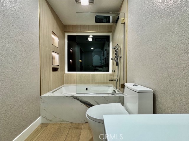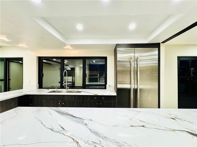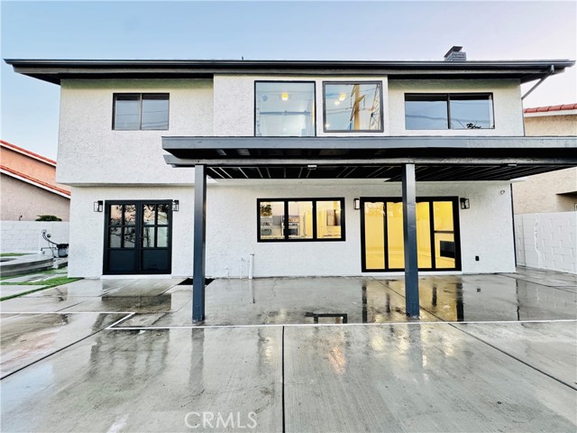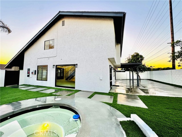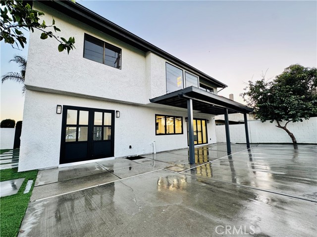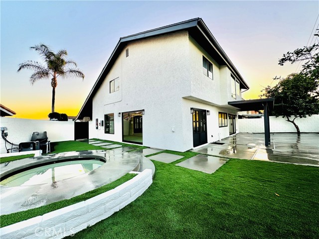 Step into an exquisitely remodeled home where no detail was overlooked. This exceptional two-story residence has been transformed inside and out with high-end finishes and thoughtful design in one of La Palma's most desirable neighborhoods. The gourmet kitchen features premium Jenn Air appliances and custom Koosah Pine cabinetry. The main level showcases elegant natural limestone flooring while the upper level offers engineered wood flooring, totaling approximately $40,000 in premium flooring. The primary bathroom is finished in honed marble for a spa-like experience. Outdoor living has been enhanced with synthetic turf in the rear yard, a brand-new in-ground hot tub with new equipment, and new hardscaping and concrete patios perfect for entertaining. The exterior features new stucco, fresh Dunn-Edwards paint, new doors and windows, and upgraded exterior lighting with high-end fixtures. Interior improvements include a new staircase banisters, all new interior and exterior doors, luxury spa inspired bathrooms, and picture worthy living spaces. Systems and infrastructure have been fully upgraded, including paid-off solar panels, new HVAC, new electrical, and updated irrigation and drainage systems. The front yard has been re-sodded with Marathon sod and high-end light fixtures enhance the interior throughout. This home has approximately $350,000 in premium upgrades, offering exceptional value for buyers seeking a turnkey residence with luxury finishes. Located near a trail just behind the property, residents can enjoy outdoor biking, walks, jogging, or quiet moments in nature. The neighborhood offers excellent schools, parks, and convenient access to shopping, dining, and major freeways.