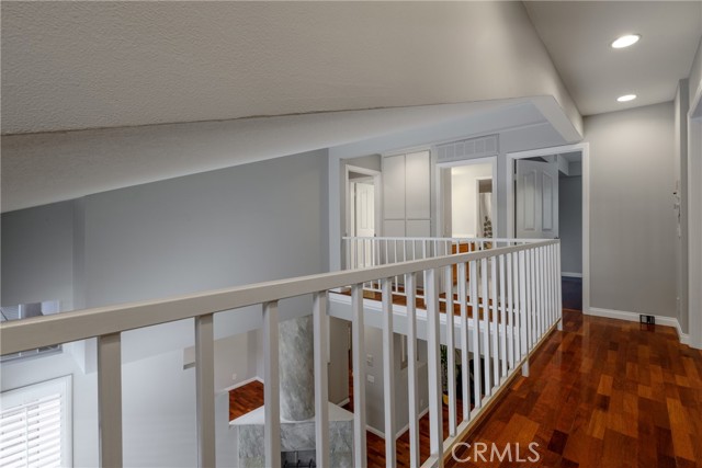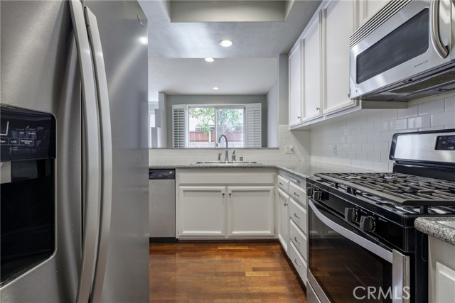 Welcome to 7325 Vassar Avenue, a beautiful townhouse in the heart of Canoga Park that combines the spacious feel of a single-family home with the ease and convenience of condominium living. Featuring three bedrooms and two-and-a-half bathrooms across approximately 1,776 square feet, this residence offers a warm and inviting atmosphere filled with natural light and thoughtful design details throughout. Upon entering, you're greeted by dramatic vaulted ceilings, elegant architectural columns, and a skylight that illuminates the open-concept living and dining area. Rich Brazilian cherrywood floors flow seamlessly across the main level, enhancing the home's sophisticated charm. The living room offers a cozy setting for entertaining or relaxing, while the dining area connects easily to a remodeled kitchen featuring granite countertops, stainless steel appliances, and a gas range — perfect for the home chef. Upstairs, spacious bedrooms provide comfort and privacy, including a serene primary suite with ample closet space and a well-appointed ensuite bath. Additional highlights include central heating and air conditioning, custom plantation shutters, in-unit laundry with washer and dryer included, and a direct-access two-car garage with EV charger for convenience and security. A private outdoor patio offers the perfect space for morning coffee, quiet reading, or casual entertaining. The well-maintained community, built in 1990, features attractive landscaping and a large spa that can double as a small pool. HOA dues cover front landscaping, water, and trash service, making for an easy, low-maintenance lifestyle. Ideally located just minutes from Westfield Topanga, The Village, and a wide variety of restaurants, shops, and parks, this stunning townhouse offers the perfect blend of comfort, style, and accessibility in one of the San Fernando Valley's most convenient neighborhoods.