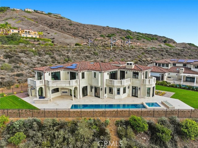 Introducing a new era of coastal sophistication in this brand new 5 bedroom with 5 ensuite bathroom estate, perfectly positioned within the prestigious Estates at Trump National Golf Course in Rancho Palos Verdes. Spanning nearly 5,000 sq. ft. of meticulously curated living space, this architectural masterpiece situated on a dream lot captures sweeping panoramic views of Trump Golf Course, the Pacific Ocean and beautiful Catalina Island from nearly every vantage point. Step through grand mahogany doors into a world defined by craftsmanship and comfort. Crema Marfil stone floors, alder cabinetry, and oak wood accents complement three elegant gas fireplaces in the living room, den, and primary suite which leads to a large primary bath with jacuzzi tub and walk in steam shower. The designer kitchen is a chef's dream, featuring granite slab countertops, a Wolf 6-burner range with griddle, Sub-Zero refrigerator, large wine fridge, dual sinks, two dishwashers, and a custom walk-in pantry with pull-out drawers. Designed for seamless indoor-outdoor living, the residence transforms to an entertainer's paradise, complete with a lap pool, jacuzzi, outdoor fireplace, and fire pit set against the backdrop of glowing Pacific sunsets and 6+ Trump Golf Course tees enjoyed from the yard and multiple balconies. Every modern amenity is at your fingertips, including a main floor guest half bathroom for convenience, a private elevator ensuring effortless access between the two levels, built-in speakers and lighting control, solar energy, dual-zone AC, and an expansive 1,006 sq. ft. 4-car garage. Located in a 24-hour guard-patrolled community, this new construction residence offers the ultimate blend of privacy, security, and timeless elegance. There is luxury and then there is beyond luxury. Schedule your private tour today and experience the unparalleled luxury of life at Trump Estates.