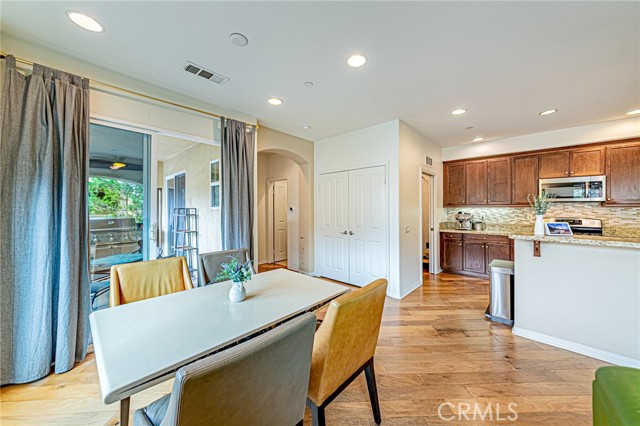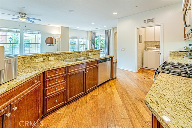 Welcome to 15229 Columbus Square, a stunning two-bedroom carriage unit in the resort style Columbus Square community. This bright home features hardwood floors, granite counters, rich cabinetry, and an inviting open great room with fireplace, custom built-ins, pantry, and a spacious balcony perfect for entertaining. The attached garage is equipped with an owner-installed EV charger, providing added convenience for electric vehicle owners. Enjoy resort-style amenities including a clubhouse, pool, spa, parks, BBQ area, basketball court, and playgrounds. Ideally located near the Village of Tustin Legacy Shopping Center, The District, John Wayne Airport, and the beautiful Orange County beaches. Zoned for highly rated Tustin Unified Schools, including Heritage Elementary and Legacy Magnet Academy where kids can walk to school from home. Experience the best of Tustin Legacy living!