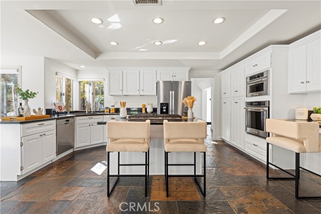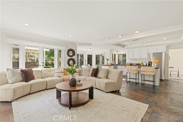 Spacious and inviting, this 5-bedroom, 3-bathroom home offers 3,166 sq. ft. of refined living space on a generous 14,875 sq. ft. lot in the exclusive gated community of Coto de Caza. The interior features soaring ceilings, abundant natural light, and an open layout connecting formal and family rooms, both with cozy fireplaces. A large bonus room with wood flooring and a balcony provides flexible space for a home office, media room, or additional bedroom. The kitchen is equipped with stainless steel appliances, granite countertops, and a breakfast nook, while the main floor includes a bedroom, laundry room, and direct access to the 3-car garage. Enjoy modern upgrades including solar panels, water filtration systems, and updated HVAC and plumbing. Step outside to a private, park-like backyard — perfect for entertaining or relaxing — just steps from one of Coto's best neighborhood parks. Residents have access to world-class amenities, including golf courses, tennis courts, pools, and scenic hiking trails. Combine luxury, comfort, and an ideal location near top schools, shops, and dining — this home offers the best of Coto de Caza living.