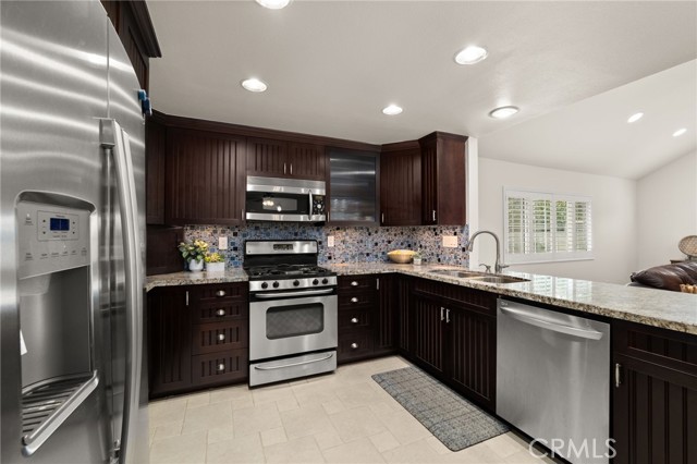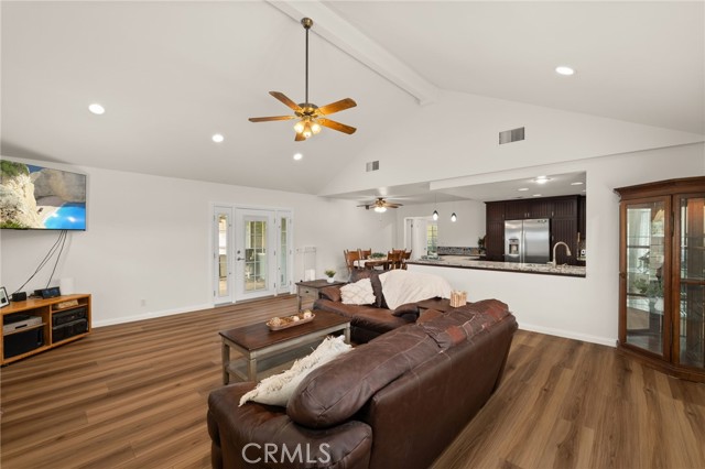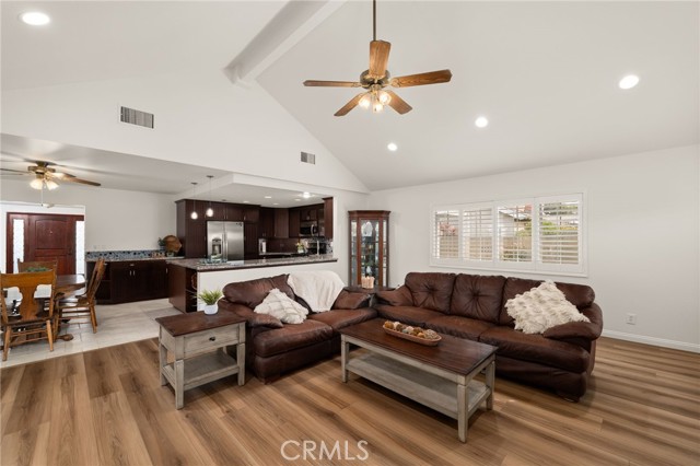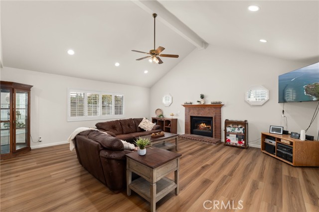 Welcome to this beautifully updated single-story gem nestled in one of Orange's most desirable and family-oriented neighborhoods. Pride of ownership is evident throughout this quiet community, offering close access to the scenic Santa Ana Riverbed biking trail which can lead you to the beach, top-rated schools, and all the charm of Old Town Orange just minutes away. This spacious home features four bedrooms and an additional flex space for an office or den, and two full bathrooms, offering a total of 2,118 square feet of comfortable living space on an impressive 6,467 square-foot lot. Step inside to find fresh interior and exterior paint, stately entry door, brand-new luxury vinyl plank flooring, and dual-paned windows with plantation shutters that fill the home with natural light. The large, open-concept living room boasts a soaring vaulted ceiling and cozy gas fireplace, creating the perfect space for both relaxing and entertaining. The updated kitchen is a true highlight, featuring granite countertops, abundant beadboard cabinetry, ornate back splash, stainless steel appliances and a seamless connection to the main living area. The oversized primary suite is a retreat of its own, complete with a washed brick gas fireplace, mirrored wardrobe doors, and an enlarged ensuite bathroom offering a soaking tub, spacious shower, and dual counter-height vanity with storage and functionality. Both bathrooms have been tastefully updated with fine finishes and thoughtful details. Outside, enjoy California living year-round in the lush backyard with planter boxes, and covered patio, ideal for gatherings, barbecues, or quiet evenings under the stars. The extra-large driveway provides ample parking, including space for RV. Additional features include an indoor laundry room, two-car direct access garage, and meticulous landscaping that enhances the home's inviting curb appeal. Families will appreciate the quality local schools, including Fletcher Elementary with its Dual Language Immersion Program, Cerro Villa Middle School, and the choice of either Canyon High School or Villa Park High School. With its blend of modern updates, generous living space, and central location to all major freeways, this turnkey home captures the best of Orange living. Don't miss your opportunity to make this amazing home yours.