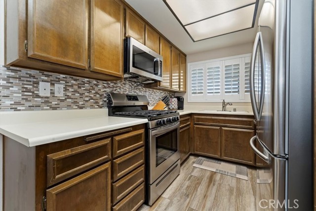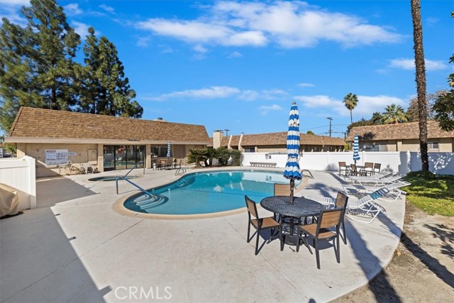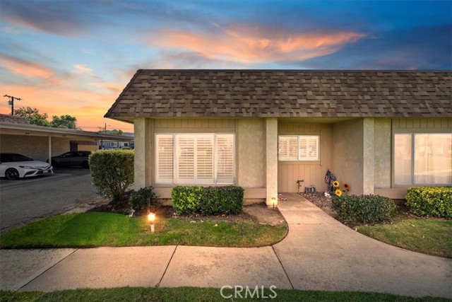 Welcome to this charming home located in the desirable Sunrise Village 55+ Community, a peaceful neighborhood conveniently close to shopping, restaurants, and more. This beautifully maintained 2-bedroom, 2-bathroom home offers a comfortable and functional floor plan filled with natural light. You'll love the tile flooring, new windows with elegant shutters, and the warm beige and brown tones throughout that make the space feel cozy and inviting. The kitchen features the original cabinets, adding character and charm, while both bedrooms have direct access to the private patio through large sliding glass doors, perfect for relaxing. Additional highlights include in-unit laundry with a stackable washer and dryer, ample storage space, and a clean, low-maintenance design. Sunrise Village offers great amenities for its residents, including a private community pool, spa, and clubhouse, ideal for socializing and enjoying an active lifestyle. If you're looking for a bright and welcoming place to call home, this is it!
