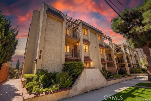 Welcome to 2722 E 20th Street #104, a spacious and light-filled Signal Hill condominium with a thoughtful layout and access to community amenities. The tiled entryway includes a storage closet before opening into the home. To the left, a hallway with built-in cabinetry leads to a full bathroom and a well-sized bedroom with a sliding closet, ceiling fan, and direct access to the bath. On the right side of the entry, the primary suite offers generous closet space, its own ceiling fan, and an ensuite bathroom featuring both a soaking tub and a glass-enclosed shower. Straight ahead, the main living area unfolds into a large, open space anchored by a white brick fireplace with a mirrored surround. A built-in bar, expansive windows, and sliding glass doors to the patio bring in natural light and create an inviting atmosphere. The living room connects easily to the dining area and kitchen, with a laundry space conveniently tucked just beyond. The private patio extends off the living area, offering a shaded, partially enclosed retreat that opens to a shared community terrace with lush greenery and direct access to amenities, including the pool. Blending comfort, functionality, and community living, 2722 E 20th Street #104 is a wonderful place to call home in Signal Hill.