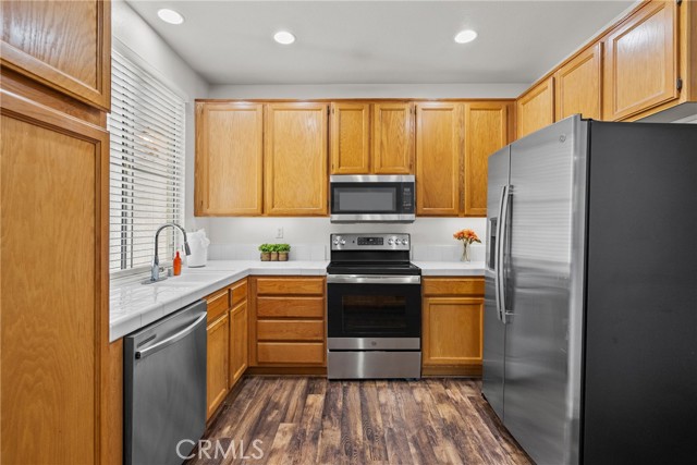 Incredible opportunity to live in the Gated Oak Lane Townhomes in coveted Circle J Ranch. Welcome home to this spacious 3 bedroom, 2.5 bath townhome offering 1,684 sqft of comfortable living space. The light filled main level features an open floorplan and vaulted ceilings with recessed lighting, stylish LVP floors, ceiling fan and a modern kitchen with new stainless steel appliances, white tiled countertops, and excellent storage. Enjoy the convenience of an indoor laundry area and direct access to your 2 car garage. The private patio is perfect for relaxing or entertaining. Upstairs, a generous loft style landing leads to the serene primary bedroom and ensuite, thoughtfully separated from the secondary bedrooms and full bath. This is one you won't want to miss. The HOA offers a secured gated entry, pool and spa.