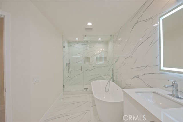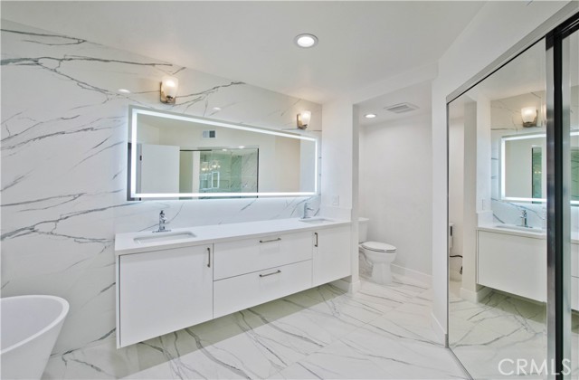 Welcome to this beautifully updated, newly remodeled two bedroom, two bath with separate office, high-end condo featuring an open floor plan designed for modern living. The spacious living area flows seamlessly into a separate dining space — perfect for entertaining or relaxing in style. This is a bright, inviting atmosphere throughout. Enjoy newly installed flooring in the kitchen, hallway, and bathrooms, brand new stainless steel appliances, brand new washer & dryer, and brand new HVAC system for year-round comfort. The kitchen offers sleek finishes and contemporary appeal, while both bathrooms are tastefully remodeled. It looks like chic hotel living. Step outside to your private patio, ideal for morning coffee or evening unwinding. Situated in the heart of Encino, this place combines comfort, sophistication, and convenience — close to shopping, dining, and everything the Valley has to offer. This unit has 2 car side by side parking located next to the elevator.