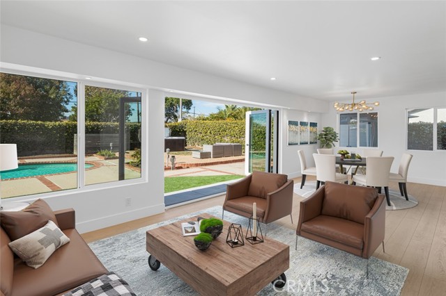 EXTENSIVELY REMODELED AND EXPANDED IN 2025 - NEVER LIVED IN POST-RENOVATION! Completely reimagined down to the framing and fully permitted, this stunning pool home with a three-car garage has been expanded to 2,405 sq. ft. per building plans. Situated on a spacious 6,955 sq. ft. cul-de-sac lot in the highly sought-after Moffett Tract of South Huntington Beach, 20401 Allport offers modern luxury in a prime coastal location. New additions include a beautiful downstairs bedroom and elegant full bathroom with private access from the main residence, a spacious kitchen and family room expansion, and a larger primary suite and bathroom. The open-concept kitchen features a massive island, custom cabinetry, Thermador stainless steel appliances, and a striking counter-to-ceiling quartz backsplash. The kitchen flows seamlessly into the family room and out to the pool area through grand WinDor panel doors, creating the perfect indoor-outdoor living experience. The living room showcases brand-new built-in cabinetry, shelving, and soundproof slat board paneling surrounding a sleek new electric fireplace. Upstairs, the expanded primary suite offers a luxurious bathroom with a fully enclosed shower, soaking tub and a deluxe walk-in closet. Three additional bedrooms share a beautifully remodeled third full bathroom. Additional upgrades include: New electrical panel and extensive new wiring, Energy-efficient recessed lighting, All-new plumbing, New WinDor dual-pane windows, New Hardie Board siding and updated stucco exterior. If you're seeking a turnkey home with a thoughtfully designed floor plan and high-end finishes throughout, look no further than 20401 Allport.