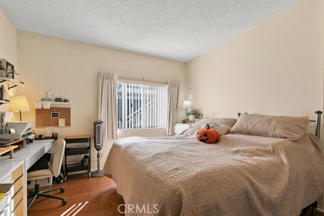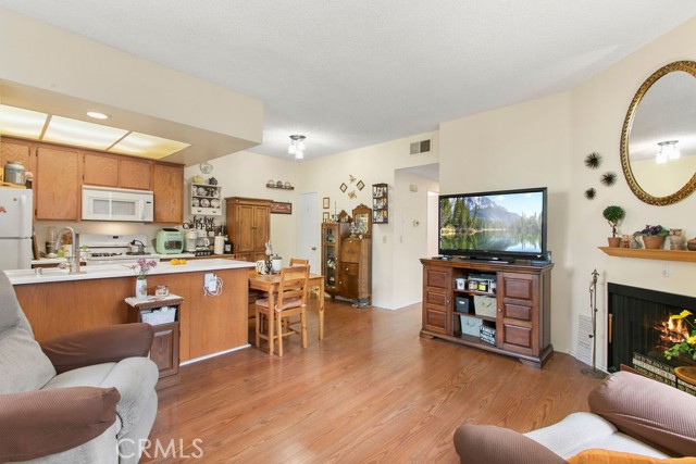 Fantastic location Greenbrier Terraces Condo, this is a street level model with no stairs 2 Bedroom 2 Bath has a 2-car attached garage just steps to your front door! Features laminate flooring throughout, inside laundry, central A/C and Heating, spacious living room with fireplace, remodeled primary bathroom, newer plumbing and electrical fixtures, entertainer's size covered patio terrace with pool views, close to main street shopping, restaurants and freeways, water and trash paid in this sought out gated community.