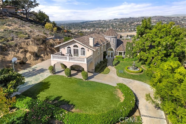 THIS IS IT... THE HOME of your DREAMS! Gorgeous custom Estate in Orange Park Acres with breathtaking, panoramic VIEWS to Downtown LA in one direction and Saddleback Mountains in the other! Plenty of room for Equestrian Facilities, family reunions and enjoying life! Enter through private gates and enjoy the park-like grounds, bubbling waterfall, mature trees, meandering gardens and its very own Vineyard. Leaded glass doors beckon you into the grand foyer w/ two story high ceilings. This spacious and open Floor-Plan includes TWO Primary Bedrooms, one upstairs and one downstairs, perfect for multi-generational living or separate guest quarters. If walking upstairs is difficult, take a ride in the beautifully appointed ELEVATOR! The formal dining room has plenty of room for Holiday get-togethers and the adjacent Living Room with its elegant fireplace is perfect for after dinner conversation. The timeless Kitchen with beautiful custom cabinetry, granite counters and high end appliances opens to the huge Family Room w/ a crackling fireplace, Bar area, a custom Elevator and spectacular vistas! Another separate and very large Bedroom and Bath PLUS an indoor Laundry Room with access to the oversized 3 Car Garage finishes off the lower level. Upstairs you will marvel at the HUGE Primary Suite with Spa-like Bathroom, a Fireplace, Sitting Area and a Kitchenette. Step out to the Balcony for sunrise views and a morning cup of coffee! Down the hall you will find two more bedrooms, another bathroom and the hall to the elevator. If that isn't enough, the rear yard boasts the most spectacular VIEWS, a rock waterfall Pool and Spa, Covered BBQ Area, Sitting Areas and LOTS of yard for Family FUN! This is the Home you have been waiting for!!