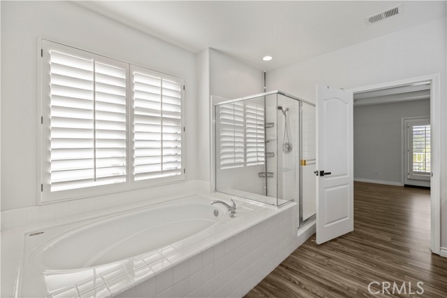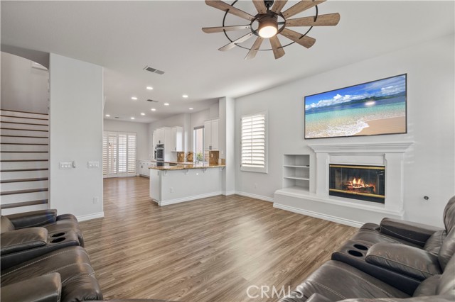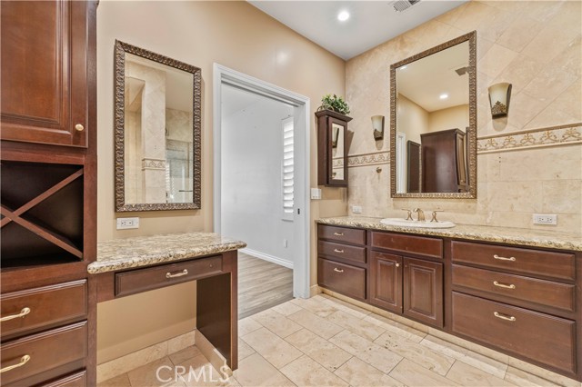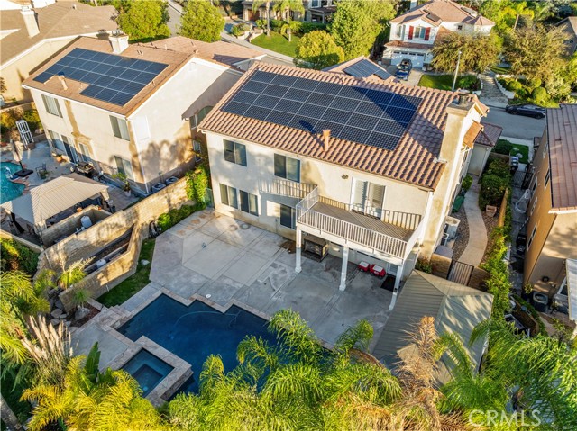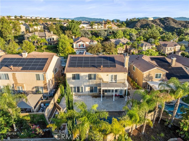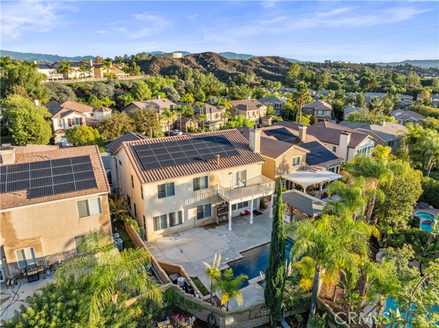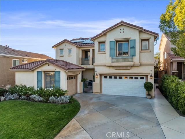 Beautiful "Miramonte" POOL Home in the Heart of Santa Clarita! This incredible property offers PAID solar, no HOA, and no Mello-Roos, along with nearly 3,200 Sq.Ft. of living space. The home boasts 4 bedrooms, 4 bathrooms, a spacious loft, dual master bedrooms, and a detached casita that can easily be converted into an ADU or guest house. Conveniently, one full bedroom and bathroom are located downstairs — perfect for guests or multi-generational living. Upon entering, you'll immediately notice the new vinyl flooring, plantation shutters, recessed lighting, fresh paint, and thoughtful upgrades throughout. The massive chef's kitchen is designed for functionality and style, offering abundant storage, granite countertops, a double oven, cooktop, and a walk-in pantry. The dining area seamlessly opens to the inviting family room with a cozy fireplace, making it an ideal gathering space. Upstairs, you'll find three spacious bedrooms and a large loft that can accommodate a game room, home office, or family retreat. The primary suite features a fireplace, spa-like ensuite bathroom with a jetted tub, and a generous walk-in closet. A secondary bedroom also includes its own updated ensuite bathroom with a walk-in shower heated travertine floors, vanity, plenty of storage, and a spacious walk-in closet. Step outside to your own private oasis. This entertainer's backyard features a sparkling pool, spa, outdoor gazebo/bar, flat-screen TV, and multiple seating areas — an absolutely perfect space for hosting gatherings or creating new memories. Sitting on a spectacular lot with a private gated courtyard, balcony, and exceptional outdoor amenities, this home truly has it all. A rare find in one of Santa Clarita's most desirable communities!