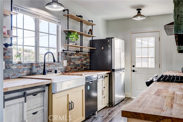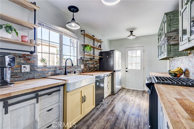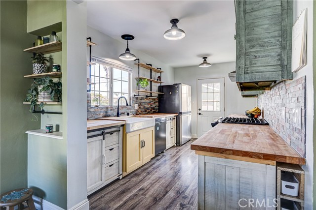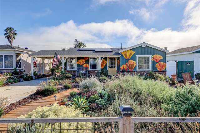 Welcome to the "Poppy House". This home is light, bright, colorful and full of charm and personality. You are greeted by a serene Zen like drought friendly front yard with custom pavers and brick entry. Custom kitchen with farm sink, butcher block appliances and custom backsplash. Living room with coved ceilings and newer AC/Heat split. Spacious primary bedroom with access to the backyard. Both baths have been nicely updated, primary bath with dual sinks and newer vanity. 3/4 hall bath with custom tile and newer vanity. Laminated floors throughout. Entertainer's backyard with patio fruit trees and play area for the kids. 1 car detached garage with bonus room and 3/4 bath ( not permitted). Roof is 3 years old. Upgraded electrical with 220 in the garage. Tesla solar panels and battery back up.