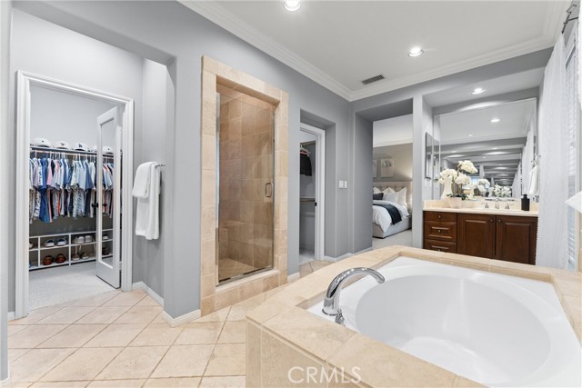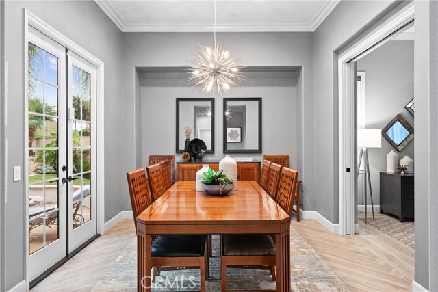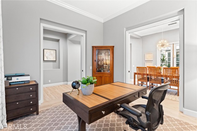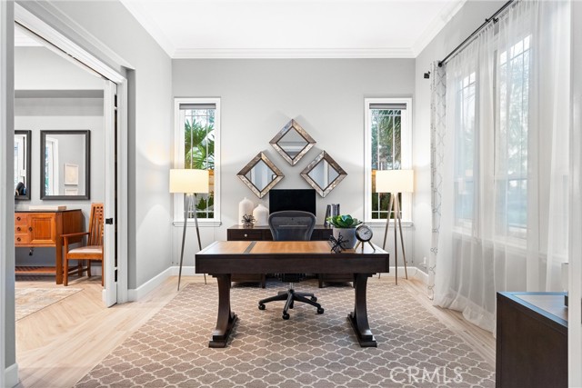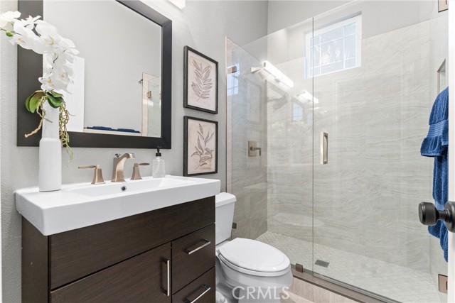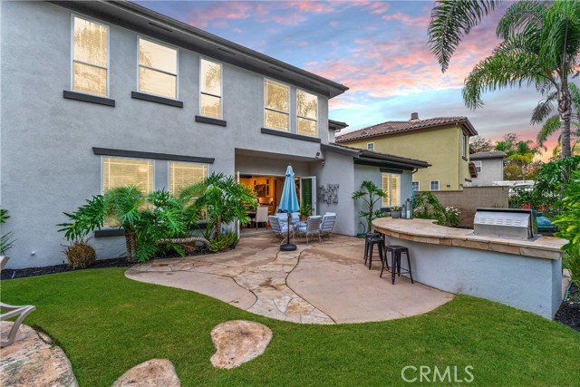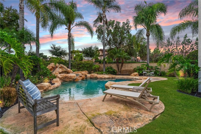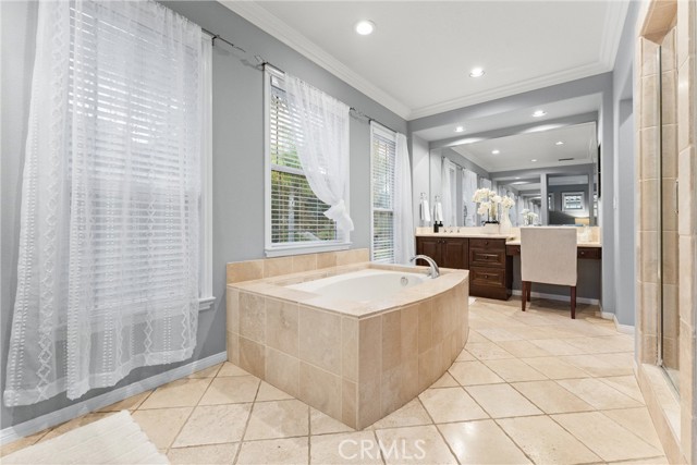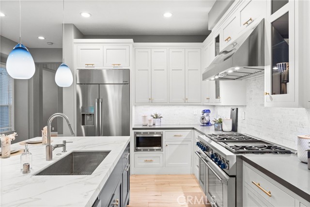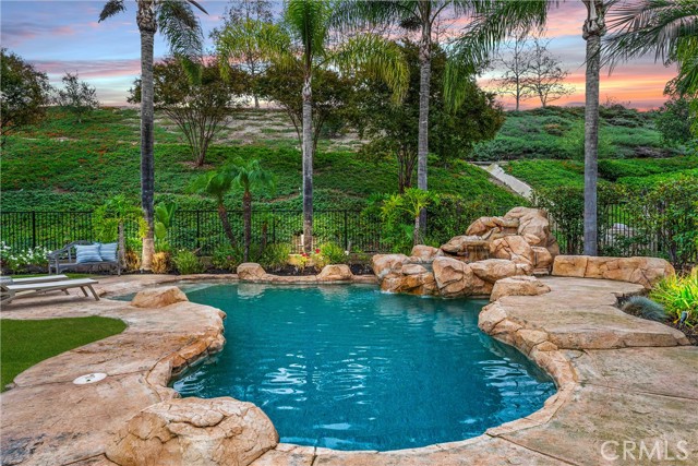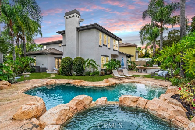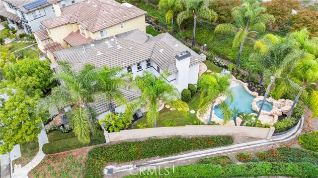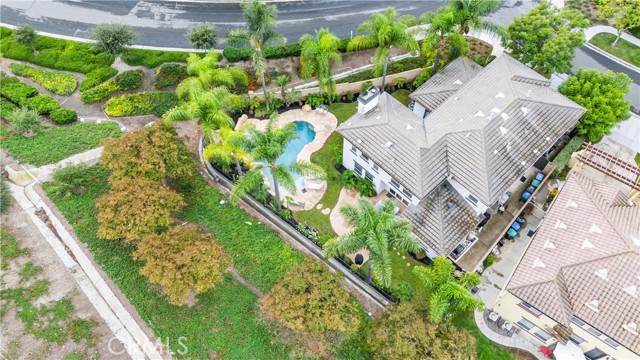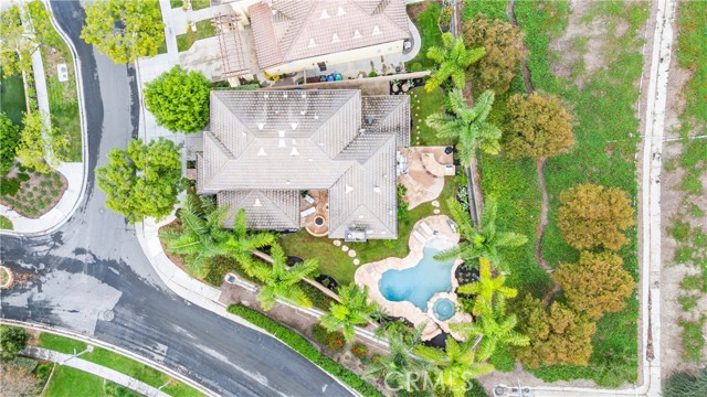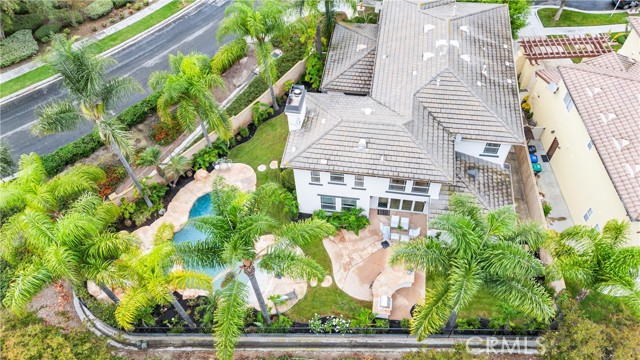 Welcome to 24 Thornhill, where modern design meets everyday comfort in this stunning 5-bedroom, 4-bathroom residence. Spanning 3,432 square feet on an oversized 8,256 square foot corner lot, this home offers the perfect blend of style and functionality. Step inside to an open-concept floor plan with imported Italian porcelain wood-look tile flooring that seamlessly connects the main living spaces and the backyard through La Cantina doors and screens, creating an inviting atmosphere for both entertaining and relaxation. The gourmet kitchen is a showstopper, featuring a large durable Neolith island, six burner Thermador stove and Dacor refrigerator, sleek custom-designed shaker-style cabinets, and ample storage with butler's pantry. The custom dry bar includes floating shelves, two refrigerators and deep beverage storage. The adjacent living and dining areas are flooded with natural light, enhancing the home's bright and airy feel. The renovated downstairs bedroom and bath with quartz countertop and frameless shower provide a convenient retreat for guests or multigenerational living, while the dedicated office with pocket doors is ideal for remote work or study. Upstairs, the spacious primary suite offers an ensuite with dedicated separate sinks and generous closet space, while additional bedrooms provide flexibility for family, hobbies, or a home gym. Upstairs bedrooms benefit from a Jack and Jill bathroom with the fifth bedroom as a bonus room. Enjoy California's indoor-outdoor lifestyle with a private pool and yard. A three-car tandem garage ensures plenty of parking and storage. System upgrades include newly installed heating and air conditioning (2025) plus newer water heater, whole-house fan, garage door/lift, pool heater and pool filter. Don't miss this rare opportunity to own a beautifully designed and meticulously maintained home in a highly sought-after neighborhood!