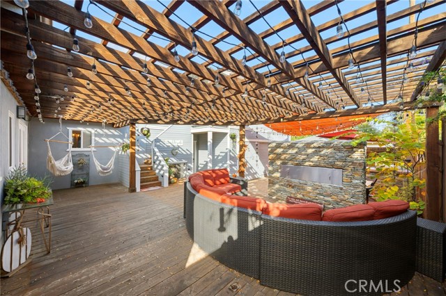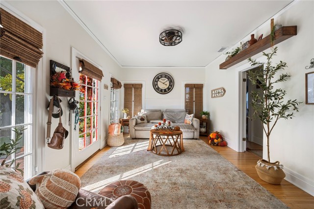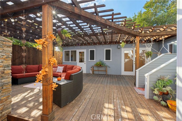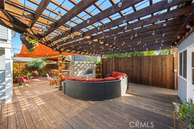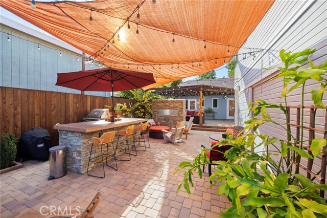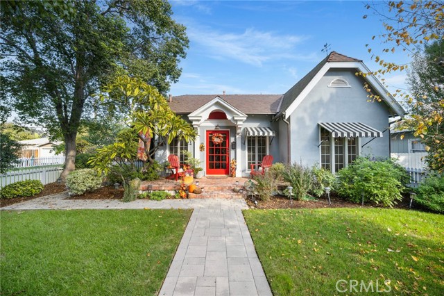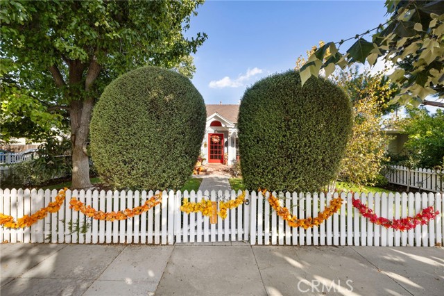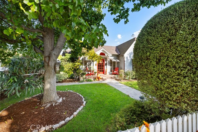 An eclectic Anaheim cottage with serious main-character energy. Think English Tudor meets French countryside — all wrapped into a 1920s Pacific Ready-Cut Home, shipped by train, assembled like a life-size kit, and adored for nearly 100 years. The original bones steal the show: classic double-hung sash windows, charming casement windows, true 1920s wood floors, picture rails, and a storybook built-in dining buffet that feels straight out of a vintage film reel. The kitchen? Still rocking its adorable breakfast nook, the kind that demands lazy mornings and something warm in a mug. A thoughtful 12x12 addition brings modern ease with a spacious bathroom + walk-in closet, blended effortlessly into the home's historic architecture. A white picket fence frames the lush, mature landscaping — pure cottage-core — but the backyard shifts into entertainer mode fast: a two-tiered deck, double-sided fireplace, firepit lounge, pergola, and a fully outfitted outdoor kitchen (BBQ, fridge, bar seating, the works). It's a whole vibe. In the rear: a beautiful 752 sq ft garage topped with a 715 sq ft ADU that feels like a European guest retreat. One bedroom, full kitchen, split A/C + heat, storage, privacy — ideal for guests, renters, creatives, or the person in your life who "just needs their own space." And the historic cherry on top: the Mills Act. The next steward inherits wonderfully low property taxes in exchange for keeping this gem exactly what it already is — plaque-worthy. Blocks from Center City Anaheim, artisan dining, neighborhood bars, shops, the library, the post office — and yes, Disneyland close enough to add a hint of magic to the night air. A rare blend of whimsy, history, craftsmanship, and personality. This cottage doesn't just stand out — it stands in its own era.