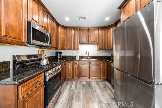 Charming single-story end-unit located in the City of Orange. This townhome features three roomy bedrooms, two bathrooms, and a spacious private patio. The bright, open layout includes laminate wood flooring throughout. The kitchen and bathrooms have been updated with granite countertops and modern finishes. Conveniently situated with quick access to the 55, 261, and 241 freeways, and just off Chapman Ave. Close to multiple shopping centers, restaurants, and schools. The community offers great amenities including a clubhouse, pool, spa, picnic area, and beautifully maintained landscaping. The HOA covers exterior upkeep and trash service. Additional highlights include a two-car garage, an assigned parking spot, guest parking, and a pet-friendly HOA that keeps the community looking its best.