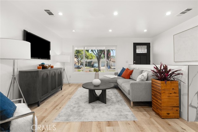 Move-in ready and thoughtfully updated. This is a wonderful opportunity to own a turnkey home in one of Cerritos' most desirable neighborhoods. Discover this bright, beautifully updated Cerritos home featuring a comfortable single level layout with all bedrooms conveniently located on one floor. The remodeled kitchen is equipped with New appliances. Laundry is easily accessible in the attached garage for added convenience. Stay comfortable year-round with updated central heating and air conditioning. Step outside to a newly refreshed backyard, complete with new artificial grass and a large Pavilion ideal for gatherings, lounging, or outdoor dining. Located within the highly sought-after ABC Unified School District, this home is zoned for Bragg Elementary, Haskell Middle, and Whitney High School just minutes away. Enjoy Walking distance from Dog Park and disc golf, pickleball, tennis, volleyball, and softball, plus a jogging track and outdoor exercise stations at liberty park, the Cerritos Mall, Cerritos Performing Arts Center, dining, and major commuter routes. property sold as is.