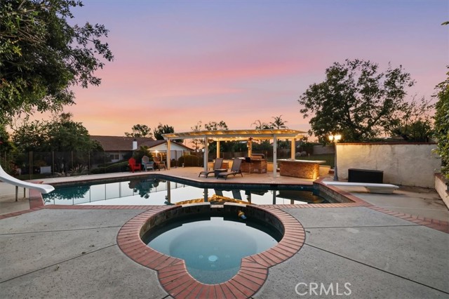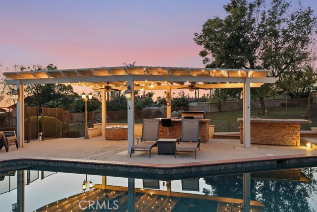 ENTERTAINERS DREAM HOME with a VIEW of both the city lights and mountains!!! This gorgeous home in the highly desirable area of Rancho Cucamonga - Offers a perfect blend of inviting living areas, tasteful elegance and an abundance of natural light giving a radiant warmth all throughout the day. This double level layout welcomes you into an attractive entrance which flows beautifully into the family / dining area which then opens into the gourmet kitchen / family room area. The gorgeous kitchen features stainless steel appliances, granite counter-tops and stunning custom cabinets. There are three generously sized bedrooms on the main level and the primary en-suite is situated on the entire upstairs level with AMAZING VIEWS! The back terrace is designed for enjoyment of every season accented with an extensive patio that leads up to the pool, BBQ and fire pit area. The shimmering pool has a slide which is fun for all ages and the jacuzzi to enjoy at the end of the day! This amazing home is ready for the perfect family to begin making memories to last a lifetime!! Bonus Features: Dual air-conditioning & heating units (3 zones), 2 Dishwashers in the Kitchen, New Pool Equipment, New Garage Doors, Luxury Vinyl Flooring and much more!