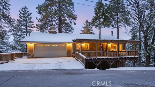 Spectacular home with awe-inspiring views of Lake Gregory and Mt. Baldy! This newer 3-bedroom, 3-bath property features a level-entry garage and a charming covered front porch complete with a bench swing. The main level offers an inviting living and dining area with hardwood flooring, a stone fireplace, and an open layout to the spacious kitchen, which includes granite countertops, dual ovens, and a center island with a copper vegetable sink — absolutely ideal for entertaining. Downstairs, the bedrooms are located off the game room and second deck. The primary suite features a rock fireplace and a large ensuite bath, creating a true sanctuary. All three levels offer decks with panoramic views where you can enjoy amazing sunsets, star-filled skies, and even the 4th of July fireworks over the lake. The third level, accessed by exterior stairs, is ready to be completed as an ADU or finished using the builder-designed option for an interior staircase to create a full three-level home. Located at the end of the road, providing this property extra privacy. This is the one you've been waiting for!