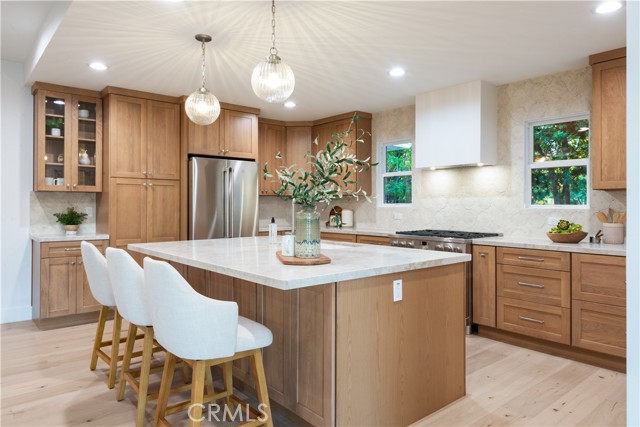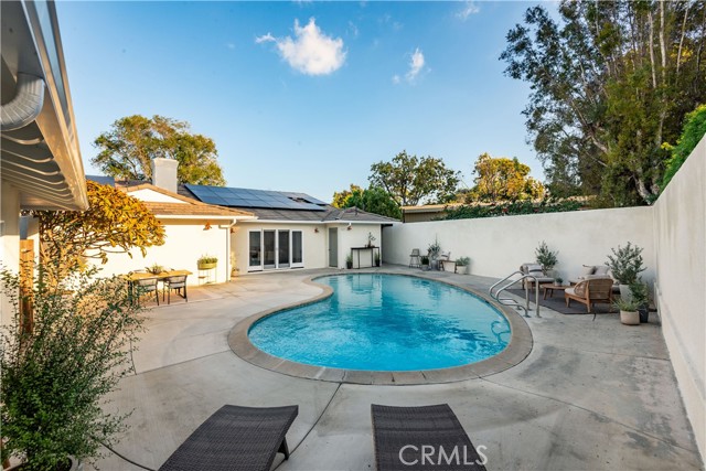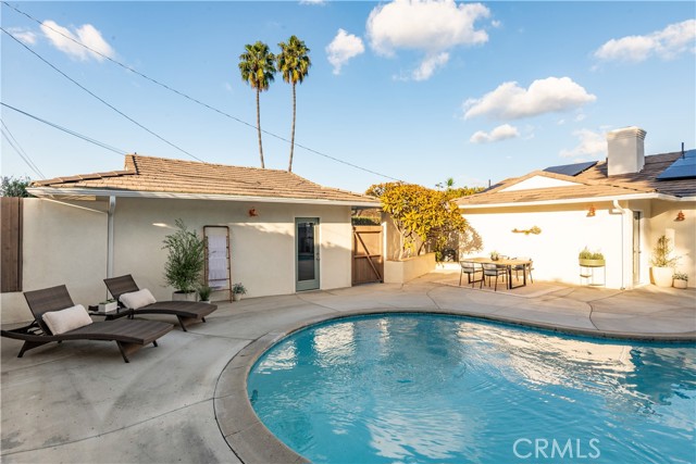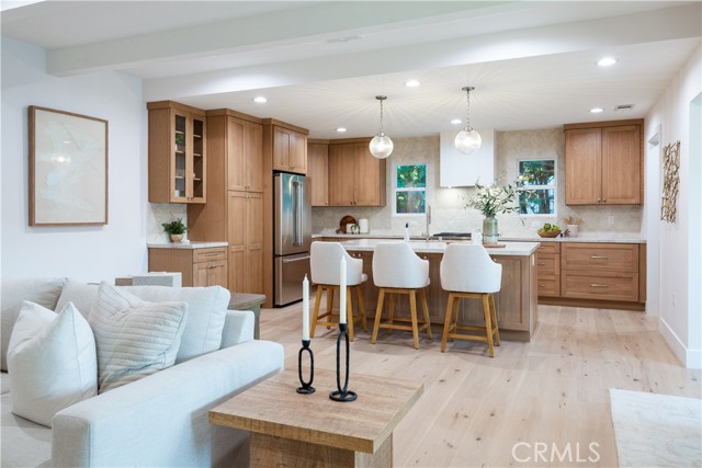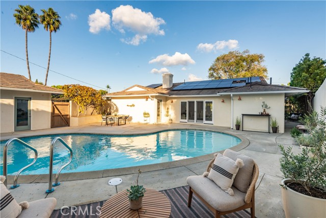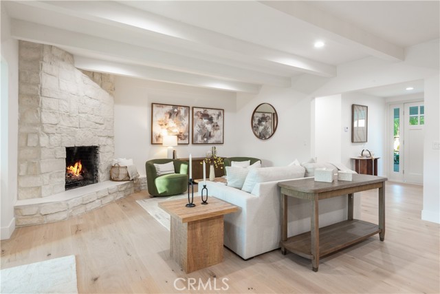 PARK ESTATES SINGLE LEVEL POOL HOME | Completely transformed with today's most desired features and finishes, this stunning residence embodies the warmth and ease of an organic California ranch style home where curated design, natural materials, and thoughtful craftsmanship come together in perfect harmony. Every space has been thoughtfully redesigned with a focus on effortless indoor-outdoor living. Featuring all new engineered oak flooring and a calm, cohesive palette that guides you through beautifully redefined spaces. The formal living room off the entry features a fireplace and sliders leading to a serene private patio, one of several outdoor spaces throughout the property. The gorgeous open concept kitchen features a large island with Taj Mahal quartzite, custom backsplash, generous use of cabinetry, all-new appliances, and an inviting flow into the family room. A walk-in butler's pantry with beverage service, additional cabinetry, and wine fridge elevates both daily living and effortless entertaining. A well-placed powder room off the kitchen also connects directly to the pool and is ideal for enjoying sunny days outside. The family room centers around a cozy fireplace and opens to the adjacent dining room. All the bedrooms and bathrooms have been fully upgraded with designer-selected tilework, fixtures, and finishes. The separate bedroom wing boasts three bedrooms and two additional bathrooms. The primary suite off the pool features backyard vistas, a walk-in closet and a stunning spa-inspired bath. The exterior is just as thoughtfully renewed...the pool has been recently plastered with new tile accents as well as multiple patio areas creating endless opportunities for gatherings, relaxation, and outdoor living at its finest. There is a long, elegant driveway with an electronic gate which leads to the finished two-car garage. Additional upgrades include tankless water heater, central air, paid off solar panels, new doors, new windows, and sliders. Lovely curb appeal with all new sod, landscaping, and lighting. Residents enjoy the gorgeous tree-lined streets, wide lots, nearby park, excellent schools, and a tight-knit community. Set on a prime lot in one of the neighborhood's most desirable locations, this home offers the perfect blend of elevated design and Park Estates living.