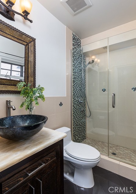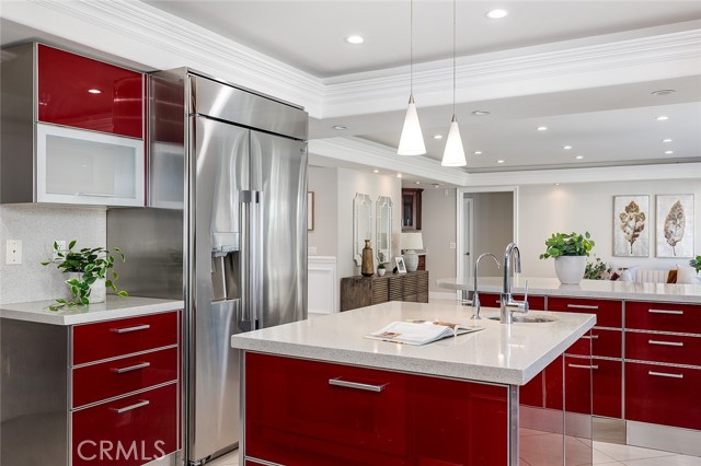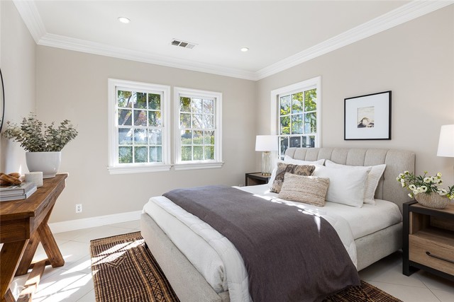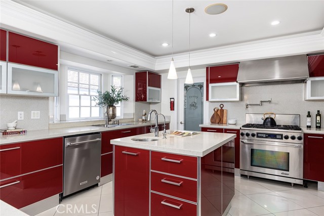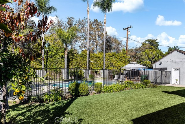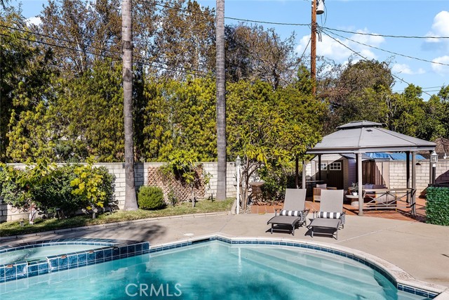 Beautiful, south-facing Cape Cod – style home located in the highly desirable city of San Marino. This two-story residence features an open floor plan with high vaulted ceilings, recessed lighting, crown molding, and porcelain tile flooring throughout. Rebuilt in 2005 (excluding the foundation and select walls), the home has been exceptionally well maintained over the years. Upon entering, you are greeted by a charming decorative fireplace in the living room and an elegant staircase with wrought-iron railings and mahogany wood, situated just off the dining room. The modern kitchen includes Italian Scavolini tempered-glass cabinetry, a newer LG built-in refrigerator, stainless steel appliances, Caesarstone countertops, and a walk-in pantry. The adjacent family room offers a wet bar and French doors that open to the patio and backyard, creating a seamless indoor-outdoor flow for entertaining. The first floor offers two bedrooms, a den/optional fifth bedroom, and three bathrooms. The primary suite and an additional bedroom suite are located on the second floor. The spacious primary bedroom includes a wet bar and an oversized walk-in closet, while the primary bathroom features a jetted spa tub, separate shower, double sinks, and granite countertops. The expansive backyard is beautifully landscaped with a lush lawn, more than twenty fruit trees — including pear, apple, orange, lemon, guava, plum, fig, cherry, avocado, passion fruit, and grapes — and a variety of flowers that create a true garden atmosphere. A large, securely fenced swimming pool and gazebo provide an ideal setting for outdoor gatherings. The pool was retiled and replastered in 2022, with a new dual variable-speed pump installed in 2025. Additional features include a detached two-car garage, a finished basement offering ample storage, and a home security system. Mature privacy hedges and two secure iron gates, including a driveway gate, surround the front yard for enhanced privacy and security — creating a private oasis perfect for comfortable living and entertaining.
