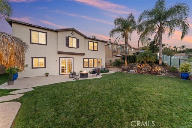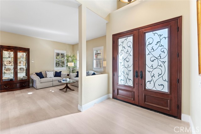 EXECUTIVE HOME | PANORAMIC VIEWS | GUARDED+GATED | REMODELLED KITCHEN | DOWNSTAIRS BEDROOM | OPEN CONCEPT | 3-CAR GARAGE | CUL-DE-SAC | Discover the epitome of elegance in this executive residence, known as the Fountain House, located in the prestigious gated community of The Retreat. Step into the expansive private front courtyard, highlighted by two tranquil fountains - an inviting space to welcome friends or spend peaceful mornings. The custom double-door entry welcomes you into a grand formal entryway leading to the Living Room and adjacent Dining Room, creating an ideal setting for those special gatherings. The Chef's Kitchen features a large island, breakfast bar seating, granite countertops, walk-in pantry, butler's pantry, coffee station, upgraded cabinetry (2023) with soft close doors/drawers, JennAir stainless steel appliances, & double French doors to the spacious backyard - perfect for entertaining any size of gathering. The open-concept Family Room features a gas fireplace and endless windows for panoramic views of snow-capped mountains & end-of-day sunset colors. A convenient downstairs Bedroom + full bath is perfect for multi-gen living or guests. Ascend the sweeping staircase to find your oversized Primary Bedroom with its spa-inspired ensuite - deep soaking tub, dual sinks, oversized walk-in shower, and generous walk-in closet. Bedrooms 3 and 4 are well-sized with a nearby full bathroom, while the expansive Loft is a perfect flex space for office, media room, or play area. A dedicated Laundry Room has folding station, utility sink, and ample cabinets. Ahhhh ....the Backyard! It's a private oasis featuring gorgeous mountain views, built-in BBQ island with ample bar-top seating, your own custom waterfall and even a private vineyard, all set within a fully landscaped, pool-sized yard. ADDITIONAL UPGRADES: Beautiful luxury flooring (2021), gorgeous plantation shutters (2021), soft water system, new carpet (2024), & fresh exterior paint (2023). LOCATION: Walk to nearby playground, park and basketball court, or stroll the walking trails. Ideally situated near Trader Joe's, Starbucks, Amazon Fresh and Dos Lagos Shopping Center for cinemas, shopping, restaurants, music venues & more! Quick access to 15/91 Expressways, 71 Fwy, & 241 Toll Road to OC. With its refined finishes, serene spaces, and prime location, this remarkable home delivers the lifestyle you've been dreaming about!