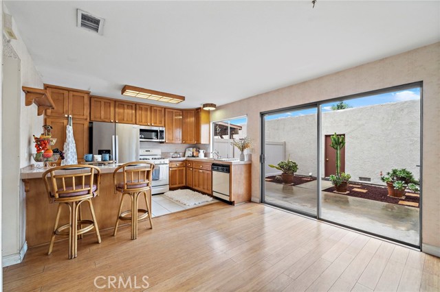 Welcome to 4555 Toledo Way, located in one of Buena Park's most desirable neighborhoods. This inviting two-story condominium offers three bedrooms, two full bathrooms upstairs, and a half bath on the main level. Situated in the sought-after Casitas California community, residents enjoy HOA amenities including a pool, spa, clubhouse, half basketball court, and open grassy areas. The home features a private patio connecting the two-car garage to the dining and kitchen areas, ideal for indoor/outdoor living. You will find true Hardwood flooring throughout the home with tile in kitchen and all three bathrooms. The spacious kitchen was remodeled in prior years with quality wood cabinetry. This home is conveniently located near Knott's Berry Farm, The Source Mall, and within the highly regarded Sunny Hills High School District. A great opportunity for both owner-occupants and investors alike. Family-friendly community with strong rental potential. Original photos and select AI-enhanced images included for design inspiration. This townhome is a Planned Unit Development (PUD) — fee-simple land ownership. Not a condo.