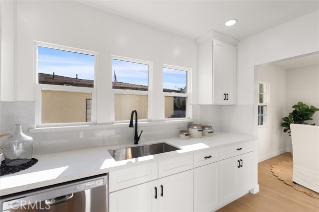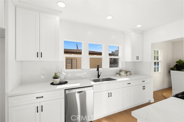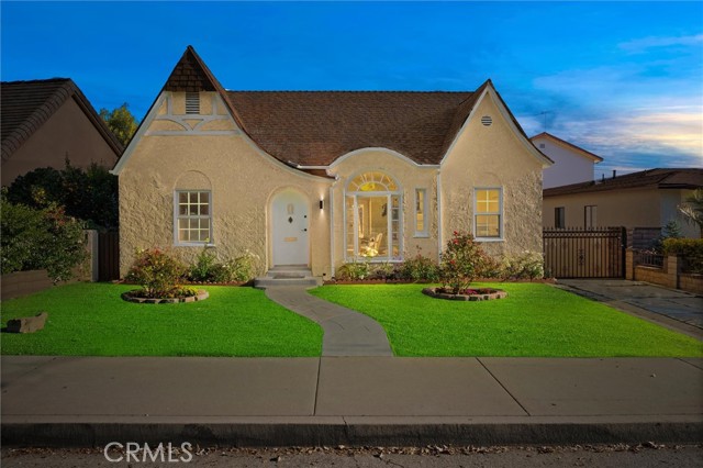 Charm and nostalgia welcome you to this 1928 Tudor-style home. The original arched front door — complete with its "speakeasy" peephole and vintage door knocker — sets the tone for what's inside. Sunlight pours through the classic arched, floor-to-ceiling window btahing the space in natural light. A neutral color palette blends beautifully with the new natural wood toned flooring, and a faux fireplace takes center stage in the spacious living room, which flows seamlessly into the formal dining room. The kitchen is bright and fresh with crisp white shaker cabinets, quartz counters and backsplash, and stainless-steel appliances. An adjoining breakfast nook offers the perfect spot to start your morning with warm sunshine and a delicious latte. This home offers incredible flexibility. Tax records show five bedrooms, but the layout provides countless possibilities. The primary suite includes a walk-in closet and a beautifully remodeled ensuite bath. A secondary bedroom — currently used as an office — is served by another remodeled bath. A third bedroom, also ensuite, is conveniently located off the dining room. And there's more! If you need an in-law suite or potential rental income, the fourth ensuite bedroom at the back of the home offers a lower-level living area with a completely separate entrance. It can blend seamlessly with the main house or function as an independent unit, in-law suite or perhaps even a short term rental. A long driveway leads to a two-car garage, providing ample parking. The home sits on an oversized 8,700 sq. ft. lot with endless potential — space for pets, play, gardening, or even a future ADU. This home has been fully updated and is truly turnkey, featuring dual-paned windows, fresh paint, new flooring, recessed lighting, central heat and air, and a finished basement area where you will find the laundry, or is deal for a workshop, craft room, or storage. All of this is located in desirable Vista Del Oro, directly across from iconic Averill Park — perfect for a peaceful stroll, duck-watching at the pond, or an impromptu picnic with treats from nearby Weymouth Corners. Major streets, the freeway, and the bridge are easily accessible. With the upcoming opening of West Harbor, the waterfront is buzzing, making San Pedro the South Bay's newest ocean-side destination. A classic home, a prime location — and nothing left to do but move in!