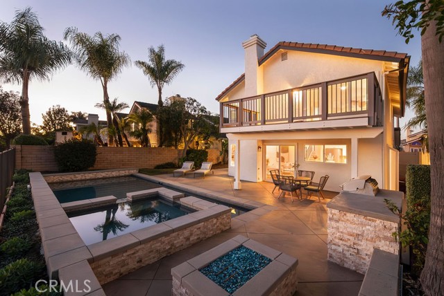 Welcome to this elevated coastal 4 bedroom salt water pool home in Laguna Niguel — where stunning views, thoughtful upgrades, and resort-style living come together in perfect harmony. This beautifully updated two-story home offers an open and airy floor plan enhanced by gorgeous vaulted ceilings, a grand double-height entry, and seamless indoor-outdoor flow. The main level features multiple living spaces including a spacious living room, family room, dedicated dining room, and a convenient powder bathroom. The home is complete with a separate interior laundry room — washer and dryer included. At the heart of the home sits the newly refreshed kitchen, showcasing an island perfect for gathering, soft-close cabinetry and drawers, quartz counters, chic champagne brass hardware, and views that invite natural light throughout. Upgraded flooring flows through the entire home, and new light fixtures in every bathroom elevate the fresh, modern aesthetic. Upstairs, the expansive primary suite feels like a private getaway with its own deck offering peek-a-boo ocean views and sweeping neighborhood vistas. The spa-inspired primary bathroom includes dual sinks, a separate soaking tub, a walk-in shower, and two generous walk-in closets. Each additional bedroom features built-in desks, making them perfect for study, work, or creative space. The upstairs shared hall bathroom also includes dual sinks, upgraded hardware, and a spacious walk-in shower. Step outside to your private backyard oasis featuring a sparkling pool, spa, built in bbq, and gas fire pit ideal for entertaining or unwinding while taking in sweeping neighborhood and city-light views. Additional upgrades include fresh interior and exterior paint and updated finishes throughout. A 2-car garage plus a 2-car driveway provide ample parking and convenience. This community includes a tennis/sport court and a spacious grass picnic area. Enjoy the close proximity to Laguna Beach, Dana Point Harbor, Waldorf Hotel and the Salt Creek Trail (Across Marina Hills Dr) that can be walkable to Salt Creek Beach and Chapparosa Park.