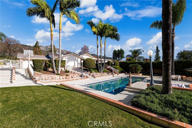 Welcome to 472 W. 23rd Street, a beautifully maintained single-story home nestled in the highly desired city of Upland. Situated on an expansive half-acre lot, this property showcases breathtaking mountain views and an exceptional blend of comfort, space, and outdoor enjoyment. This charming 4-bedroom, 2-bath residence has been thoughtfully updated over the years. Step inside to discover an inviting open and spacious floor plan featuring high ceilings in the living room, dining room, family room, and kitchen — perfect for modern living and entertaining. The home boasts numerous upgrades, including dual-pane windows, wood shutters, updated flooring, and remodeled bathrooms. The exterior is equally impressive with a sparkling pool and spa, basketball area, and a huge RV side yard. The attached two-car garage offers convenience and includes a full pass-through (crew) door. Outdoors, enjoy a large covered patio, built-in BBQ, and lush landscaping accented by mature fruit trees — an ideal setting for gatherings or peaceful relaxation. The circular driveway provides ample parking for multiple vehicles, and the generous lot offers plenty of room for an ADU. Truly move-in ready, this home is a rare find offering space, privacy, and resort-style amenities — all in one of Upland's most scenic neighborhoods. Don't miss your chance to make this exceptional property your own!