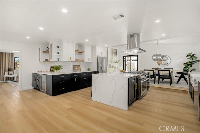 Welcome to your new home! This completely remodeled gem is nestled in an incredible Buena Park location within the coveted Los Coyotes Country Club neighborhood. Perched above a charming circular driveway and located just about a Par 5 away from the Los Coyotes Country Club, this home offers exceptional convenience and appeal. Blending modern upgrades with classic farmhouse charm, the open-concept living room, family room, and kitchen are ideal for hosting family gatherings or holiday celebrations. With 3 spacious bedrooms and 2 updated bathrooms, comfort and style are seamlessly integrated throughout the home. The master suite is a true retreat, featuring a grand master shower and a luxurious walk-in closet. Key features include sleek luxury vinyl flooring, a newer roof, new windows, modern recessed lighting, a new HVAC system with a WiFi-enabled Nest thermostat, a Tesla charger, and a covered carport. The chef's kitchen is a dream, showcasing brand-new quartz countertops, cabinetry with gold hardware, butcher block shelving, a charming white tile backsplash, and a large island ideal for meal prep or casual dining — perfectly complementing the home's farmhouse-inspired style. Step outside through the living room's large sliders to discover a stunning backyard offering endless possibilities and ample space. The spacious two-car garage — paired with additional parking for up to 15 cars — provides plenty of room for vehicles, storage, and guest parking. Residents also benefit from inclusion in the highly regarded Fullerton Joint Union High School District, with Sunny Hills High School conveniently nearby. This home offers easy access to freeways, shopping, dining, and local attractions, making it the ideal spot to enjoy the best of Buena Park living. Don't miss out on this opportunity — come see this gem before it's gone!