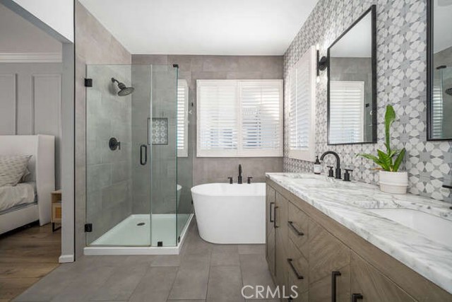 Completely upgraded residence located in the gated Milano community in Aliso Viejo, offering a flexible floor plan and extensive interior improvements throughout. The main level includes a bedroom, powder bath, and open living and dining areas designed for everyday function and entertaining. The kitchen has been fully renovated with updated cabinetry, countertops, appliances, and fixtures, with a cohesive design that flows seamlessly from room to room. Upstairs features two additional bedrooms, each with fully upgraded en-suite bathrooms. The primary suite includes a meticulously designed bathroom with a separate soaking tub, walk-in shower, dual-sink vanity, and custom finishes. The secondary upstairs bedroom also offers its own upgraded en-suite bathroom, providing privacy and functionality. A dedicated laundry room, generous closet storage, and consistent design details complete the upper level. Flooring, bathrooms, kitchen, lighting, and finishes have all been upgraded, creating a consistent modern coastal aesthetic throughout the home. Community amenities include a gated entrance, pool, and spa. The location offers direct access to nearby hiking and mountain biking trails, with trail connections leading toward Laguna Coast Wilderness Park and Thousand Steps Beach in Laguna Beach. Convenient access to Aliso Viejo Town Center, shopping, dining, and major transportation routes. Includes 3D walkthrough and video tour.