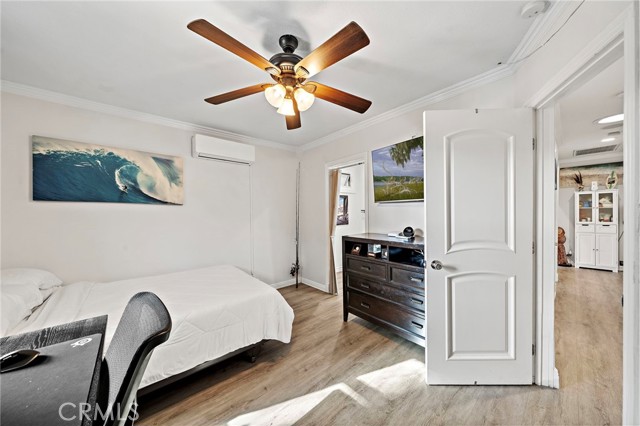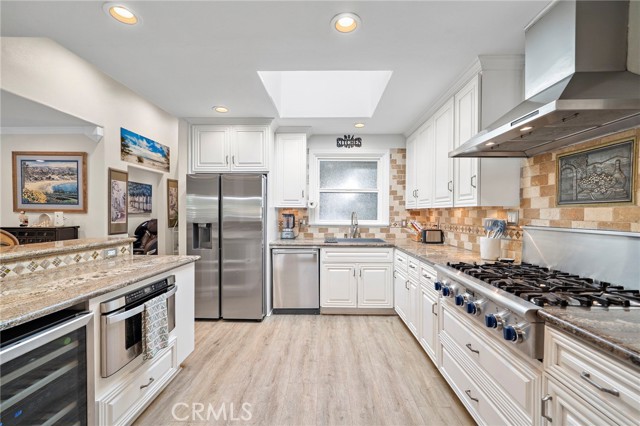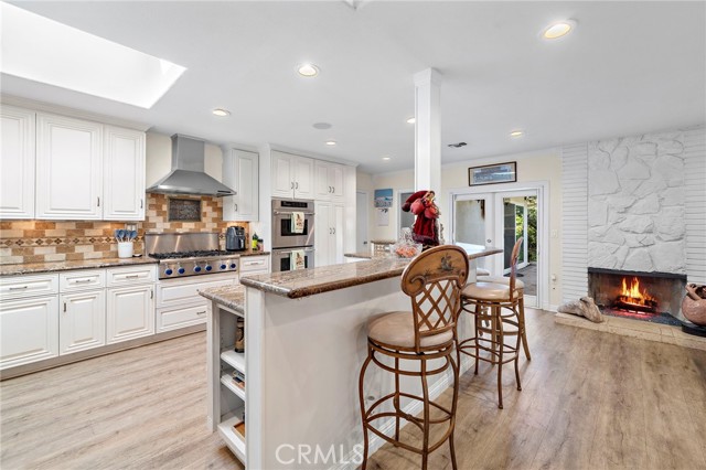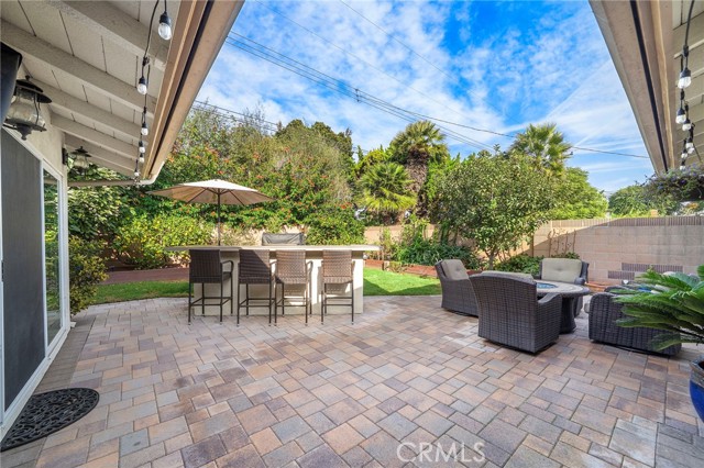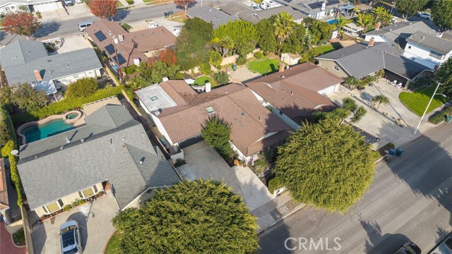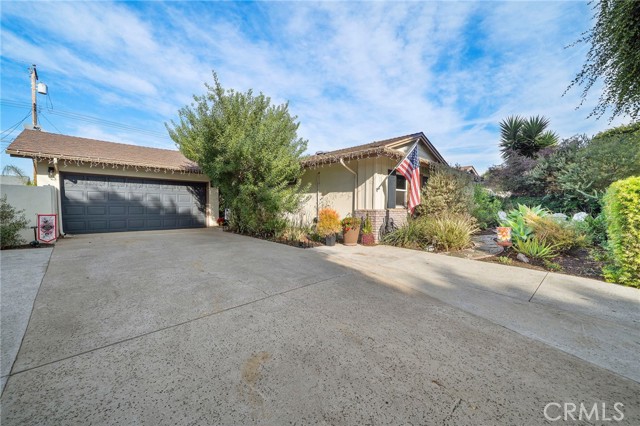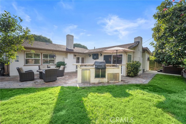 Spectacular single-level split-wing home featuring 4 bedrooms, including two primary suites, & 3 bathrooms. Expanded to nearly 2,000 square feet & fully remodeled throughout, this home showcases exceptional craftsmanship,thoughtful design, & high-end finishes at every turn. Located on a quiet cul-de-sac near Huntington Harbour,the property immediately stands out w/ striking curb appeal,highlighted by refreshed landscaping,brick accents, & a smooth-stucco pony wall w/ custom lighting that encloses a lush courtyard "secret garden" patio & an oversized driveway can easily accommodate 6 cars. A charming Dutch door opens to an elegant foyer w/ raised ceiling & an impressive open-concept layout encompassing a spacious living room w/ fireplace & entertainment center,formal dining area,& a truly remarkable chef's kitchen. Interior features include luxury vinyl flooring throughout,crown molding,abundant recessed lighting,dual-pane windows, plantation shutters,raised-panel doors,custom casements,chair railing,ceiling fans, & a whole-house fan and six mini-split air-conditioning unitsproviding efficient, zoned climate control throughout the home. The stunning kitchen is the heart of the home, offering a wraparound seating bar for up to ten, granite countertops, travertine backsplash, skylight, custom soft-close white shaker cabinetry with pull-outs, stainless farmhouse sink, wine refrigerator, and professional-grade Thermador appliances including a 6-burner cooktop with hood, double ovens, dishwasher, and under-counter microwave. The luxurious primary suite features a cathedral open-beam ceiling, raised-hearth fireplace, two custom walk-in closets, and an exquisite ensuite bath with granite dual-sink vanity, shiplap open-beam ceiling w/ skylight, privacy toilet, and designer-tiled walk-in shower. A recently remodeled guest bath offers a marble vanity, stylish tile flooring and surrounds, shiplap walls, designer fixtures, & a threshold-free wheelchair-accessible shower. The backyard is a private entertainer's oasis featuring newly installed pavers, a built-in Weber BBQ center w/ seating bar and refrigerator, above-ground spa, lush lawn and refreshed landscaping, fruit trees, vegetable gardens, & an open patio w/ sconce lighting and TV hookups. Completing the home is an epoxy-finished garage w/ full built-in workshop, custom cabinetry, attic storage, enhanced lighting, and washer/dryer hookups. Conveniently located near excellent schools, beaches, shopping, & dining.
