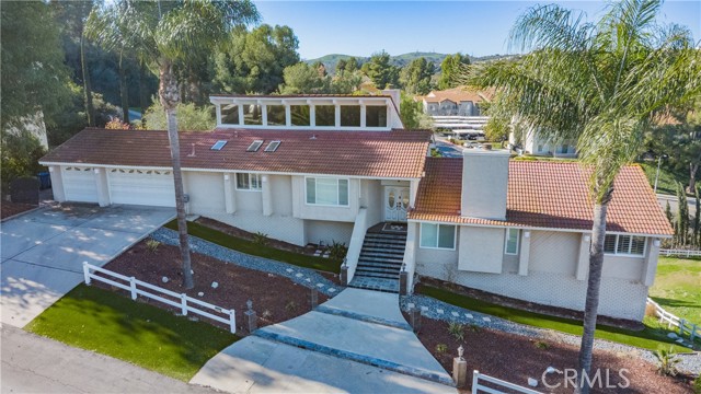 Located within the ultra-prestigious, 24-hour guard-gated community of The Country, this exquisite estate invites you into a world of refined modern design and resort-style living. Every detail of this reimagined split-level home has been curated to create a seamless indoor-outdoor flow, perfectly balancing luxury with comfort. The main entry opens to a formal living room that transitions effortlessly into the formal dining room, featuring marble flooring, vaulted beamed ceilings, a marbel fireplace, and direct access to an outdoor deck. The open-concept kitchen anchors the home with custom white cabinetry, black granite countertops, a center island, and a built-in workstation. Skylights fill the space with natural light, while stainless steel appliances connect the kitchen to the adjacent dining room, complete with a beautiful floor-to-ceiling marble fireplace, and a built-in wet bar with seating. Moving down a few steps behind the fireplace, the private quarters are revealed in this level. The private family quarters are designed for comfort and privacy. The primary suite, located in this level, offers a spacious walk-in closet, and a private balcony, and an ensuite bathroom includes dual vessel sinks, a jet tub, a separate shower, and mosaic accents. Addition 3 bedrooms and 1 bathrooms are also nearby to complete this level. Moving towwards bottom level to find a lounge/family room, complete with a dedicated bar, this versatile space is perfect for guests or creating a private and relaxing retreat. Attached covered decks run across all three levels, offering panoramic vistas of the surroundings and overlooking the backyard, which provides a serene canvas with ample space for a pool and endless possibilities for your own customization. The home has been extensively upgraded, including new vinyl plank flooring, fresh interior paint, designer lighting, contemporary hardware, custom baseboards, recessed lighting, plantation shutters, a new HVAC system, and expansive decks on every level with brand-new railings. A door off the kitchen provides direct access to the finished three-car garage with epoxy flooring, a built-in workbench, and ample storage. Residents enjoy resort-like amenities including a clubhouse, heated swimming pool, tennis courts, banquet facilities and more, all within the top-ranked Walnut Valley School District. Some photos are virtually staged.