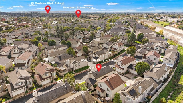 Welcome to 834 Kintyre, a beautifully updated end-unit townhouse-style condo in the gated Stratford of Huntington community. This semi-detached home shares only one partially attached wall and features a wraparound backyard, offering added privacy and outdoor living space. Recently upgraded with new carpet, luxury vinyl plank flooring, fresh paint, upgraded LED lighting, and refreshed bathrooms, this move-in ready home is light, bright, and inviting. The open dining area is filled with natural light and flows into a clean, modern kitchen with warm tones. The cozy living room with gas fireplace creates a welcoming space for relaxing or entertaining. Upstairs, the spacious primary suite features vaulted ceilings, a walk-in closet, and a primary bathroom with separate soaking tub and walk-in shower. Two additional bedrooms and two bathrooms provide comfortable living and flexibility for a growing family, home office, or guests who will love to visit. The finished two-car garage has been recently upgraded with epoxy flooring, fresh paint, and hexagon LED lighting, ideal for car enthusiasts or a workshop. Resort-style community amenities include two swimming pools, spa, clubhouse, and gated access, with sidewalks throughout for walking. Located near well-rated schools, shopping, dining, bike and walking trails, and easy freeway access, this home offers convenience, comfort, and lifestyle in the heart of Orange. Enjoy nearby attractions — or simply relax in a beautiful place to call home.
