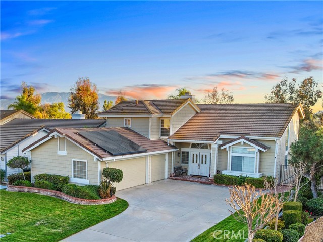 Gorgeous home located in the highly coveted Villa Avanti community of Temecula, ideally situated within walking distance to Temecula Valley High School and Ronald Reagan Sports Park. As you arrive, you're welcomed by a long driveway and a charming brick front porch. Inside, enjoy fresh interior paint, brand-new carpet, and beautiful hardwood floors. The flexible floor plan features a spacious living room with vaulted ceilings and a custom built-in entertainment center, along with a formal dining area highlighted by a stunning slider that fills the home with natural light.The remodeled kitchen is a showstopper, boasting custom cabinetry with rollout drawers, granite countertops, stainless steel cooktop and dishwasher, brand-new high-end stainless steel double ovens, and a brand-new built-in stainless steel refrigerator. A stylish wine bar with a custom built-in wine refrigerator creates the perfect space for entertaining. Additional kitchen upgrades include updated lighting, tumbled travertine backsplash, custom stainless steel sink, and an upgraded kitchen faucet. The open-concept family room is open to the kitchen and offers gorgeous backyard views, creating a warm and inviting space for everyday living. Enjoy the cozy fireplace with custom iron doors while taking in the serene outdoor setting. There is a bedroom and ¾ bathroom on the first floor providing ideal flexibility for guests or multigenerational living or home office. Upstairs, the spacious primary suite features a walk-in closet plus a secondary closet with custom organizer. The views from the primary bedroom of the city and mountain views are a must see. The primary bathroom includes dual sinks, a soaking tub, and a separate step-in shower. Two additional generously sized bedrooms are connected by a convenient Jack-and-Jill bathroom.The backyard is designed for relaxation and entertaining with two separate Alumawood patio covers, including an oversized covered area with ceiling fans and an outdoor TV is included — perfect for game days — along with a custom putting green. Additional highlights include a large three-car garage with extensive built-in storage cabinets, HVAC and furnace replaced approximately six years ago, a tankless water heater installed about four years ago, and a large paid-off solar system. Enjoy super-low property taxes and a low HOA, making this exceptional home a must-see.