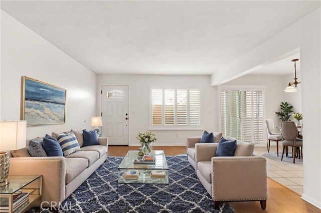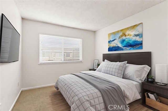 Welcome to this beautiful, well maintained, updated 2-bedroom, 1-bath condo in one of Cerritos' most desirable communities, located within the award-winning ABC Unified School District. This move-in ready home sits on a quiet, tree-lined street with easy access to parks, shopping, dining, and major freeways. The bright first-floor living area opens to an enclosed private patio, perfect for relaxing or entertaining. The living room features custom shutters on both the picture window and sliding glass patio door, filling the space with natural light. Recent upgrades include fresh interior paint, dual-pane windows, a modern front door with glass panel, and a mesh security door.?The kitchen offers ample cabinet and counter space, recessed LED lighting, and a cozy dining area. Upstairs are two spacious bedrooms, including a primary bedroom with a walk-in closet and ceiling fan. The bathroom also has been freshly painted. Additional features include upgraded central air and heating, a one-car garage, as well as an assigned parking stall, and access to a community pool, a heated spa, along with a recreation room that can be reserved. A peaceful, well-cared-for neighborhood — perfect for first-time buyers or downsizers.