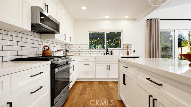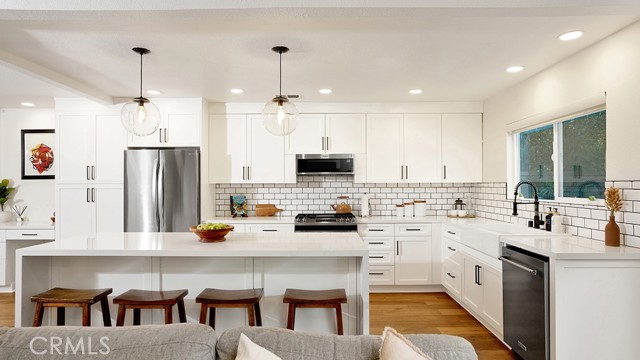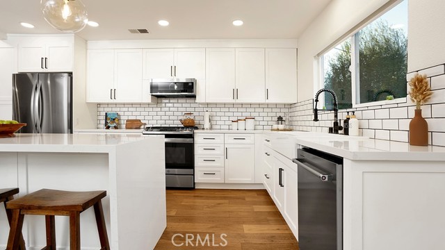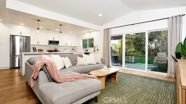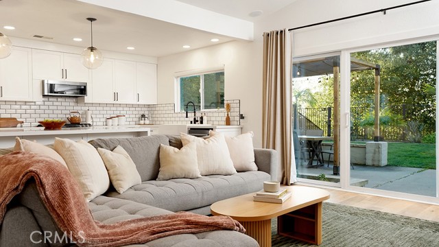 Experience luxury living in this tastefully renovated single level home that features 3 bedrooms, 2 baths, 1,485 square feet of living space on a 5,750 square foot lot with room for a pool. Upon arrival, the home's intentional landscape and well maintained exterior offers a preview of what you'll find past the front gate. Enter to a spacious courtyard that is illuminated with string lights and also home to a detached, custom 120 square foot shed that is currently used as an office. The office's finished interior features dual-pane windows, engineered flooring, recessed lighting and a mini-split AC system that all combine to create an ideal work-from-home environment. Through the double door entry you are welcomed to an open floor plan where the designer kitchen is the centerpiece. Remodeled in 2022 the kitchen features stainless steel appliances, farmhouse sink, new cabinets with soft closing doors and drawers, a pantry and built-in desk off adjacent to the dining area. The kitchen island is well proportioned to the space and provides more storage with built-in cabinets, room to seat four, additional counter space and an aesthetically pleasing waterfall countertop. The open concept design is best illustrated by looking around when being near the kitchen sink; from there you can keep an eye on what's going on in the backyard, the dining area, family room, front courtyard and inside the office if the curtains are open. Step through the great room's sliding glass door to a sizable backyard with no neighbors behind, a West-northwest orientation perfect to enjoy sunsets and a pergola well suited for al-fresco dining. During 2022 the owners also replaced the water heater, AC condenser and air handling unit, installed engineered wood floors in the main living areas, carpet in the bedrooms, remodeled the hall bath and more - so be sure to check out the feature and upgrade list. With a low HOA, low tax rate, great schools nearby, only minutes from shopping, dining, parks, access to Lake Mission Viejo with all its amenities and being located within a fiberoptic cable service area, this home may jump to the top of your list. Come see it before it's gone!
