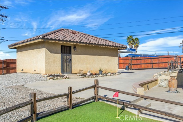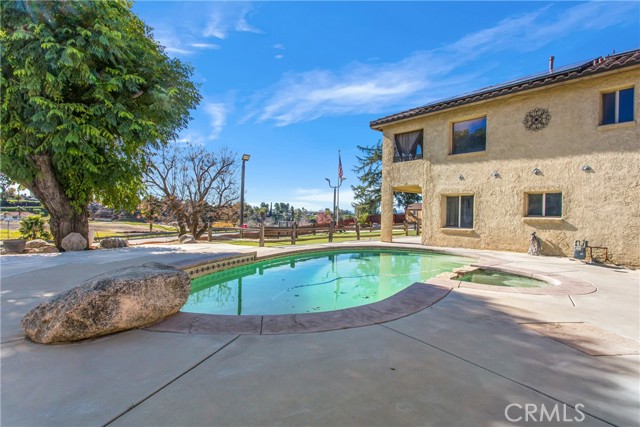 Resort-style living meets everyday comfort in this unique Yucaipa property set on an expansive 17,820 sq ft lot. This 3-bedroom, 3-bath home offers 1,944 sq ft of thoughtfully designed living space with water shares and solar ( loan) for energy efficiency and long-term savings. The interior was completely rebuilt in 2010 and includes sound-resistant walls and insulation, while the pool, HVAC system, Electrical and windows were also redone for added efficiency. Behind a fully fenced yard with remote gate access, the property features an entertainer's backyard complete with a sparkling pool and spa, 5-hole putting green, dog run, and abundant space for RV parking, boat, work trucks, or recreational toys. Inside, the open-concept layout showcases custom finishes throughout, including a living room fireplace, custom kitchen cabinetry, granite countertops and center island, pantry, travertine flooring, and a dining area. The main level includes a 3/4 bathroom with direct pool and backyard access, a convenient laundry room, and a flexible utility or home office space. Upstairs, two bedrooms share a well-appointed bathroom with a granite vanity, while the primary suite offers a private fireplace, walk-in closet, and spa-inspired bathroom with his and her sinks, soaking tub, and separate shower, along with a screened-in private balcony to enjoy the views while staying cool in the summer months. A detached two-car garage and two additional storage sheds provide ample space for tools, hobbies, and storage. Custom finishes, thoughtful upgrades, and resort-style outdoor living make this home a rare opportunity. Where every day feels like a getaway and your short game just keeps getting better!