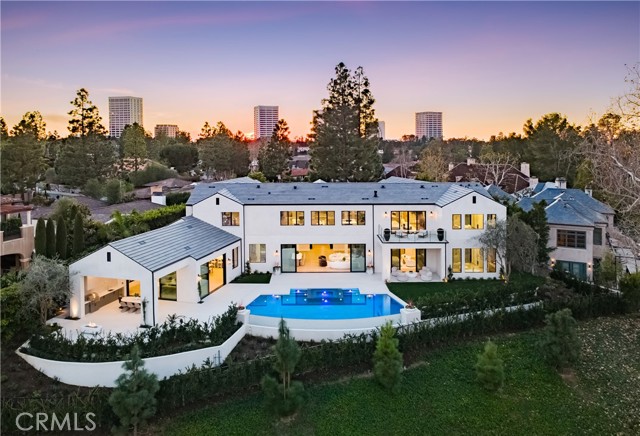Just completed and set within one of Southern California's most coveted enclaves, this newly constructed residence is a striking expression of refined architecture and modern coastal elegance. Offering exceptional luxury and an unmistakable sense of prestige, it presents a rare opportunity to own a premier estate within the highly sought-after Big Canyon community. Situated on an expansive pie-shaped lot, the home enjoys commanding views of the manicured fairways of Big Canyon Golf Course and the cityscape of Fashion Island. Expertly designed and meticulously executed, the residence spans ~10,106 square feet, seamlessly balancing grand-scale entertaining with intimate, private retreats. The floor plan includes six bedroom suites, seven bathrooms, and a six-car garage, with the option to add a vehicle lift for additional capacity. Soaring ceilings, wide hallways, and generous living spaces create an atmosphere of openness and architectural harmony throughout. A dramatic formal entry, flanked by two private offices, introduces the home's refined interiors. Beyond, the great room exudes coastal elegance, integrating with outdoor living areas through walls of glass. The family room forms the heart of the home and flows into a chef's kitchen appointed with a statement island, premium appliances and fixtures, an oversized walk-in pantry, and a striking glass-enclosed wine display. Two bedroom suites are positioned in a private main-level wing, which also includes a laundry and mud room with direct access to the two-car garage. This wing encompasses a well-appointed guest retreat and a primary suite designed as a true sanctuary. The primary suite features a private outdoor sitting area and a spa-inspired bath. The upper level offers a fitness room, an open bonus room, and three additional ensuite bedrooms. A second primary suite mirrors the main-level layout and opens to a private deck with sweeping views of the rear grounds and the rolling golf course beyond. Outdoor living spaces are equally compelling. Highlights include a California Room with built-in BBQ and bar, expansive patios surrounding a zero-edge, infinity pool and spa, multiple seating areas, and a dramatic fire pit overlooking the 13th hole. Residents of Big Canyon enjoy 24-hour guard-gated security, private parks, and lush greenbelts. Ideally located near pristine beaches, world-class shopping and dining, and major transportation hubs, this estate delivers the very best of Newport Beach living.