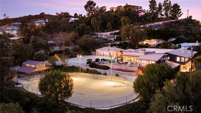 Discover an extraordinary 6-bed, 6-bath equestrian estate where refined living meets exceptional entertaining, offering unmatched flexibility, privacy, and sweeping views. Designed for gathering and gracious day-to-day living, the home features a chef-caliber kitchen outfitted with Viking dual ovens, gas range with griddle, warming drawer, overhead heat lamps and pot filler, along with a Miele steamer oven, Sub-Zero refrigerator, wine and beverage fridges, two kitchen sinks, two dishwashers, and a walk-in pantry, plus a reverse osmosis system for premium water quality. The expansive primary suite boasts a walk-in closet with dedicated laundry, a spa-inspired bathroom with large walk-in shower and soaking tub, and overlooks tranquil outdoor spaces. A separate entrance studio/ADU offers incredible flexibility for guests, multigenerational living or rental income, complete with kitchenette, ¾ bath and private parking. Infrastructure highlights include dual central A/C units supported by three additional split systems for zoned climate control, two laundry areas, indoor/outdoor speakers, gas fireplace and thoughtful storage throughout. The oversized three-car garage is built to accommodate a full-size truck, finished with epoxy flooring, high-end storage systems and a Tesla charger. Outside, equestrian amenities take center stage with a large lighted riding arena, two covered stalls, a tack room and direct access to nearby riding trails. Expansive outdoor patios and gathering spaces make entertaining effortless with room to grill, dine, play or take in the views, all supported by ample guest parking. This rare property blends polished living, top-tier systems, and functional equestrian infrastructure into a private retreat that feels miles from everything while conveniently close to city amenities, offering the ultimate urban horse property lifestyle.