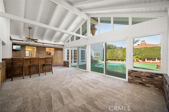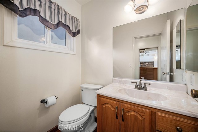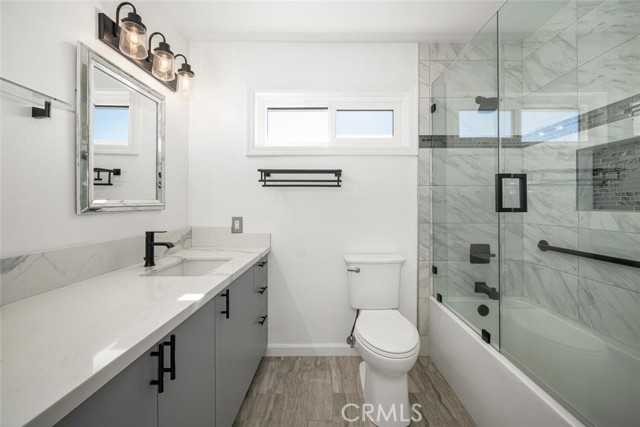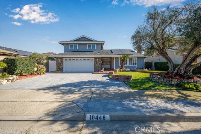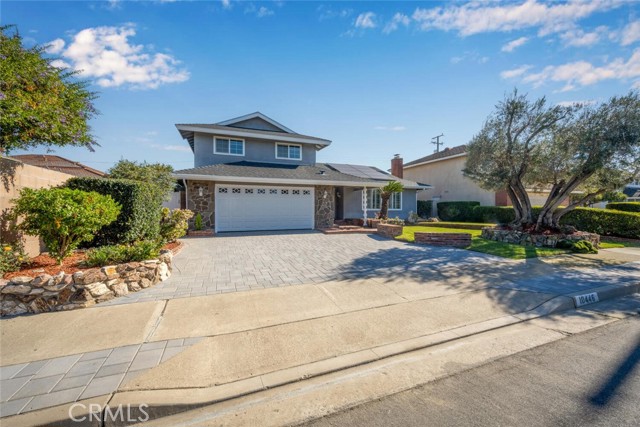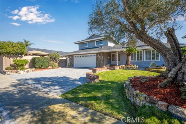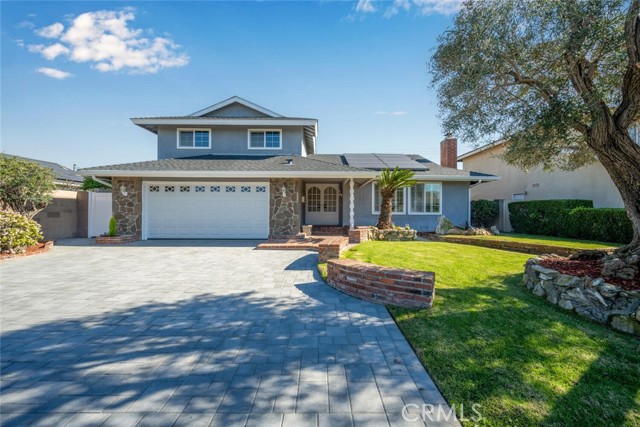 Desirable Fairway Park home tucked away on a peaceful cul-de-sac, ideally located near award-winning Cypress schools, including prestigious Oxford Academy. Enjoy close proximity to parks, soccer fields, major freeways, popular restaurants, and convenient shopping at Costco and Trader Joe's. This well-appointed home features forced-air heating and cooling, dual-pane windows throughout, a dedicated inside laundry room, and a downstairs utility third bathroom. Fresh interior paint enhances the bright, open feel. The spacious downstairs master bedroom offers recessed lighting, plantation shutters, an oversized closet with mirrored sliding doors, and a private en-suite bathroom. Designed for entertaining, the expanded family room showcases vaulted ceilings, a wet bar with beverage refrigerator, and a gas-burning fireplace — perfect for hosting friends and family on game day. The main living room features a second gas fireplace, recessed lighting, smooth ceilings, and plantation shutters. Upstairs, you'll find three generously sized bedrooms, each with ample closet space, smooth ceilings, and dual-pane windows. The fully remodeled upstairs bathroom impresses with dual sinks, abundant cabinetry, quartz countertop, and a beautifully finished tub-and-shower combo with custom glass enclosure. Exterior highlights include excellent curb appeal, a private interior location, double-wide front entry doors, an in-ground swimming pool, and an ultra-private backyard. Additional upgrades include a paved driveway, recently installed roof, leased solar system with upgraded 200-amp electrical panel, new roll-up garage door, direct garage access, and timeless mature landscaping. This home truly checks all the boxes — location, schools, comfort, and lifestyle. Come see it for yourself.
