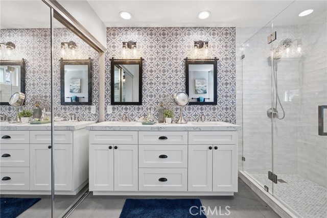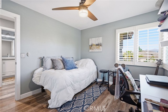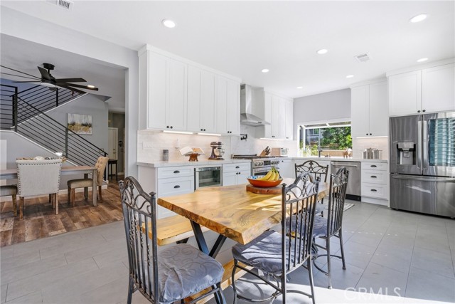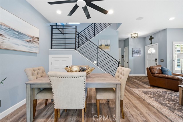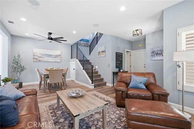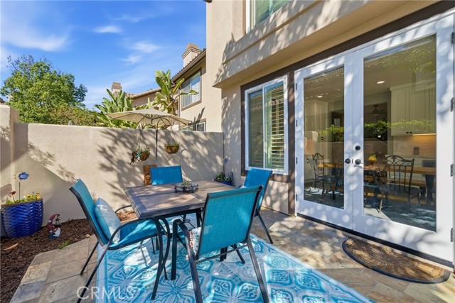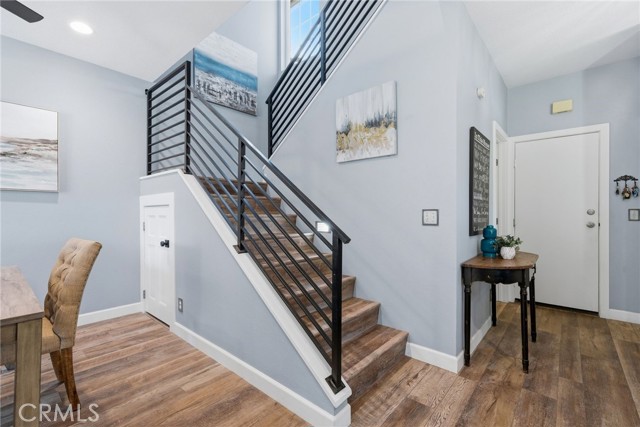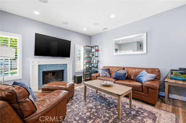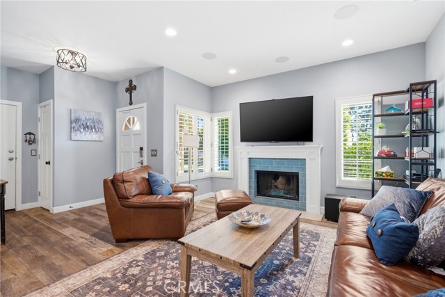 Welcome to this beautifully remodeled end-unit townhome ideally located in the heart of Aliso Viejo, just a short walk to Springdale Park. This light-filled home offers four bedrooms plus a spacious loft, providing exceptional flexibility for today's lifestyle. The fully remodeled kitchen features white shaker-style cabinetry with pull-out drawers, quartz countertops, tile backsplash, and a six-burner gas range. Stainless steel appliances, abundant counter space, and generous storage make this kitchen both stylish and highly functional. The living room showcases laminate flooring, a ceiling fan, built-in speakers, plantation shutters, and convenient under-stair storage. A cozy fireplace with a custom tile surround and white mantel anchors the space, while a new contemporary black stair railing adds a modern design touch. All bathrooms have been completely remodeled, featuring new cabinetry, sinks, fixtures, and custom finishes throughout. Upstairs, you'll find four bedrooms plus a loft, all with ceiling fans, shutters, and no carpet. A large linen closet is conveniently located off the hallway. The primary suite offers a striking accent wall with wood panel detailing, a walk-in closet, and a stunning spa-like bathroom with dual sinks, custom tile work, and an oversized shower with a built-in seat. Enjoy a private, enclosed backyard with ample outdoor space for relaxing or entertaining. The garage features a clean epoxy floor, adding both style and durability. Located in a desirable community with a pool and spa, this move-in-ready home combines thoughtful upgrades, modern finishes, and an excellent Aliso Viejo location.