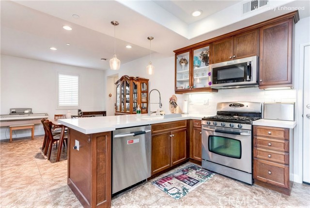 Rare Opportunity! Modern Luxury in Cambridge Lane Experience the pinnacle of Tustin Legacy living in this meticulously upgraded 1,676 sq. ft. home. Offering a "single-family" feel with the low-maintenance lifestyle of Columbus Square, this residence has been thoughtfully refreshed for the modern buyer. Recent Upgrades & Highlights: Brand New Flooring: Say goodbye to carpet! 100% waterproof luxury flooring has just been installed throughout the upper level and stairs, offering a seamless, sophisticated look that is as durable as it is beautiful. Designer Kitchen: A chef's delight featuring sleek quartz countertops, a custom tile backsplash, and elegant glass-front cabinetry. Inviting Great Room: The open-concept living area is bathed in natural light, centered by a cozy fireplace — perfect for relaxing or entertaining. Smart Layout: Three spacious bedrooms upstairs, including a convenient second-floor laundry room (no more hauling baskets up and down stairs!). Parking & Storage: An attached 2-car garage plus some of the best guest parking availability in the community. The Lifestyle: Living in Columbus Square feels like a year-round vacation. Enjoy exclusive access to the resort-style clubhouse, sparkling pool, and pristine parks. You are steps away from high-end shopping, the vibrant new Veterans Sports Park, and top-tier STEM education facilities. This isn't just a home; it's a community designed for your best life. Priced $20k below the most recent model-match sale in the complex! Instant equity for the savvy buyer. Seller may consider interest rate buy-down for qualified buyers. "Please note that some photos in this listing have been virtually staged or digitally enhanced to illustrate the property's potential. Original, unedited photos are included in the gallery for comparison in compliance with CRMLS Rule 11.5.2."