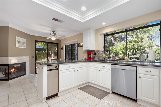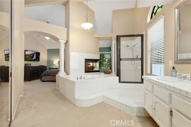 Wonderful single-family residence nestled on a cul-de-sac in the Pinecrest neighborhood of Mission Viejo. The main level offers a versatile floor plan with a family room, living room, and formal dining area, providing designated spaces for entertaining, complemented by vaulted ceilings that bring in abundant natural light. Completing the main level is a sought-after ground-floor bedroom with a full bathroom, ideal for guests or flexible living, along with a designated laundry room. Upstairs, discover a tranquil owner's suite featuring a private deck, fireplace, soaking tub, walk-in shower, dual vanities, and a large walk-in closet. Two additional secondary bedrooms and a bathroom complete the upper level. Outside, enjoy a private retreat with a fully landscaped, low-maintenance yard. The home includes a two-car side-by-side garage with driveway parking and ample street parking. Upgrades include a newer roof and AC unit. Conveniently located just moments from Pinecrest Park, schools, shopping, dining, parks, trails, transportation, and Lake Mission Viejo access.