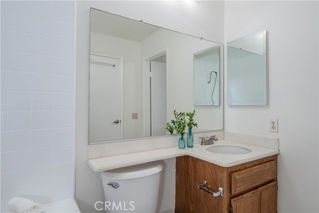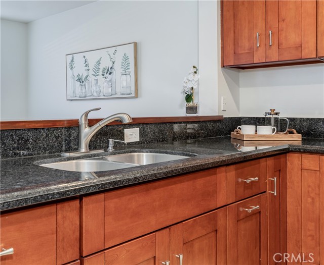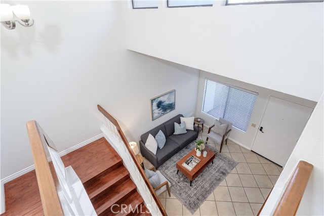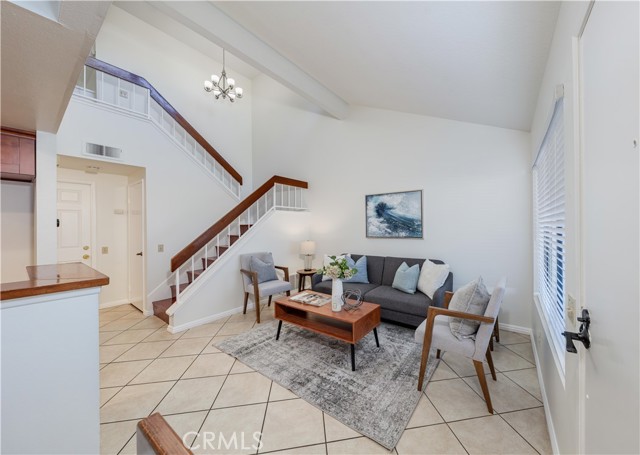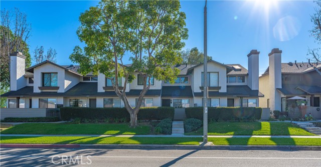 Welcome home to this enchanting two-story condo, encompassing approximately 1,002 sq. ft. of thoughtfully designed living space. This delightful residence features two spacious bedrooms and one and a half bathrooms, complemented by the convenience of an attached two-car garage. Nestled within the serene and prestigious Lakeview Townhomes and Condos community in Anaheim, this home is a true gem. Upon entering, you are welcomed by soaring ceilings that create an airy ambiance, allowing natural light to flood the space and enhance its inviting feel. The open flow from the living room, dining room, and kitchen amplifies the serene home design. The warm kitchen shaker cabinets perfectly harmonize with the elegant grey granite countertops, complete with a stylish serve-over bar, ideal for casual dining and entertaining. The primary bedroom is a personal retreat, with vaulted ceilings, a generous walk-in closet, and an ensuite bathroom that features a luxurious soaker tub and a large vanity counter for added convenience. Step outside to your serene private patio, the perfect sanctuary for relaxation, morning coffee, or evening gatherings. The community itself has been thoughtfully upgraded, including a new roof and various exterior enhancements, ensuring a well-maintained living environment. The homeowner's association (HOA) takes care of water, allowing you to enjoy the abundant amenities, which include a stunning eight-acre private lake, meandering creeks, lush greenbelts, a sparkling pool, and a rejuvenating spa. Conveniently situated near freeways, shopping centers, schools, and parks, this condo offers easy access to a wide range of recreational activities. It's the ideal blend of comfort, luxury, and location — making it a perfect place to call home.