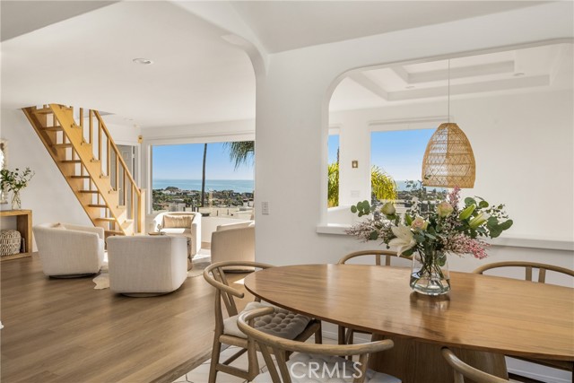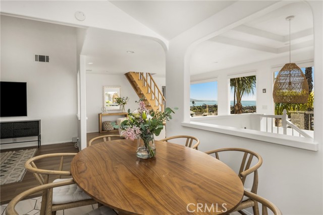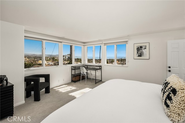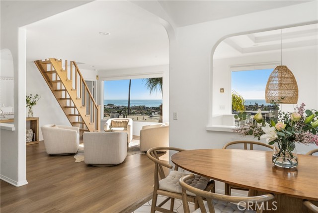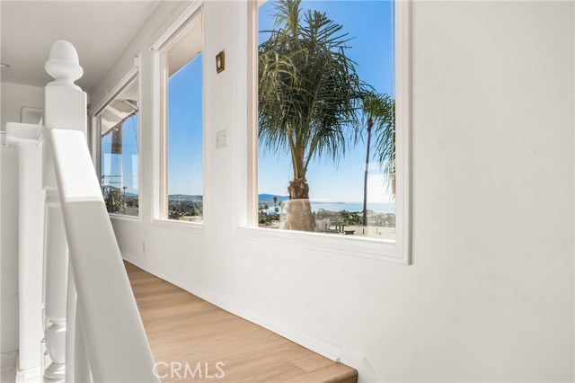 WHITEWATER OCEAN VIEWS visible from the kitchen, living areas, and primary suite. Unlike many homes in the Lantern Village, these views are unobstructed and panoramic and stretch all the way to San Diego and beyond. This modern coastal Mediterranean residence is bright, fresh, and refined, offering clean lines, a relaxed coastal vibe, and exceptional indoor – outdoor living. Enjoy multiple outdoor spaces designed for both everyday living and entertaining, including a beautifully landscaped front yard framed by mature king palms, a spacious backyard ideal for gatherings, and a convenient outdoor shower; perfect after a surf session or beach day. An ocean-view balcony off the kitchen invites sunrise coffee moments. In addition, the expansive rooftop deck delivers breathtaking 360-degree ocean and mountain views, complete with an outdoor kitchen and gas fire pit. From here, take in Fourth of July fireworks from surrounding coastal cities, enjoy a front-row seat to the Dana Point fireworks, watch sailboats glide through the harbor, or soak in events like the Maritime Festival. Enter through a striking custom modern Mediterranean Dutch door, allowing ocean breezes to flow freely throughout the home. Inside, the property features numerous updates, including refreshed kitchen and bathroom plumbing and lighting fixtures, updated hard flooring throughout, recessed (canned) lighting, and a crisp white, light-filled interior. Additional highlights include electronic locks and en-suite bathrooms for all bedrooms, including two conveniently located on the main level. This home is ideally located just a short stroll to the Dana Point Harbor, The Strands and Doheny beaches, and Downtown Dana Point's shops and restaurants. In addition, the completion of the Dana Point Harbor revitalization project will further enhance the appeal of this exceptional coastal community. NEW PHOTOS COMING SOON.
