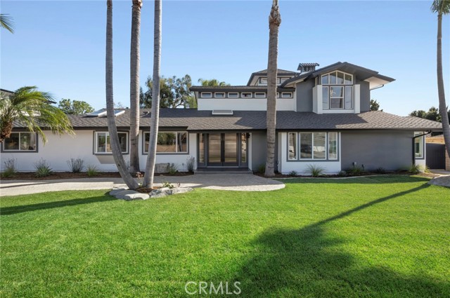 A beautifully designed multi-generational estate offering 6 bedrooms and 6 bathrooms across two separate residences, set on an expansive, flat lot of over half an acre in one of Yorba Linda's most desirable neighborhoods. The main residence features 4 bedrooms and 4 bathrooms with light-filled interiors, wide-plank wood flooring, vaulted ceilings, and exposed beam architecture that brings warmth and character throughout. The living spaces are open yet well defined, anchored by a fireplace feature and large windows that create a seamless connection to the outdoors. The kitchen serves as the heart of the home, designed for both daily living and entertaining. It includes custom inset shaker cabinetry, an oversized waterfall island with seating, professional-grade Viking appliances, designer tile backsplash, integrated lighting, and direct access to outdoor living areas. The primary suite is positioned as a private retreat with vaulted ceilings and tranquil sight lines. The spa-inspired bathroom features an oversized walk-in shower, soaking tub, custom vanity, and refined finishes. Additional bedrooms and bathrooms continue the home's cohesive design, offering comfort, privacy, and luxury. A standout feature of the property is the separate second residence, offering 2 bedrooms and 2 bathrooms above an expansive RV-sized garage. The garage provides substantial space ideal for multiple vehicles, specialty storage, or collector use. The upper residence includes a full kitchen and living area, creating a fully independent home well suited for extended family, guests, or private living quarters. The grounds are designed for both relaxation and entertaining, featuring a massive resort-style pool, expansive hardscape and lounge areas, multiple outdoor gathering spaces, a built-in BBQ with a full-sized countertop, and horse stalls. The flat lot offers exceptional usability and privacy throughout. This is a rare opportunity to own a versatile estate that combines high-end finishes throughout, multi-residence flexibility, and expansive outdoor space in one of Yorba Linda's most desirable neighborhoods.